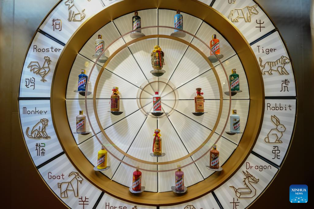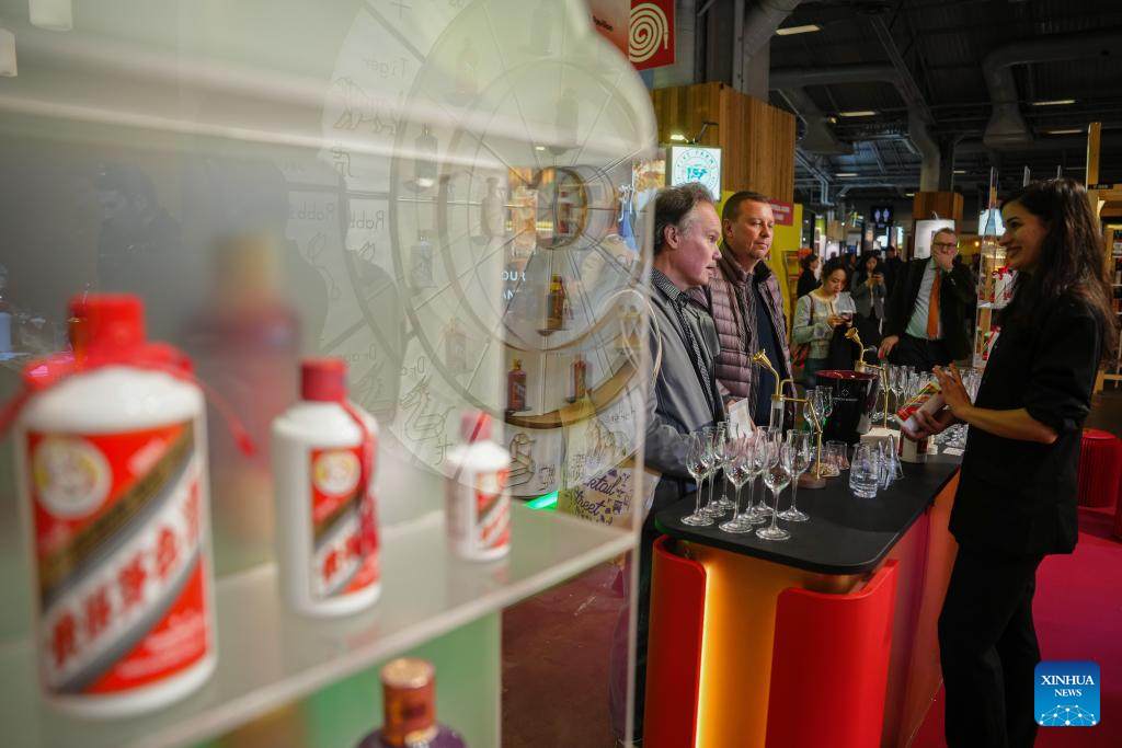The Moutai spirits are seen at the Wine Paris 2026 fair, at the Porte de Versailles exhibition center in Paris, France, Feb. 10, 2026. (Photo by Aurelien Morissard/Xinhua)