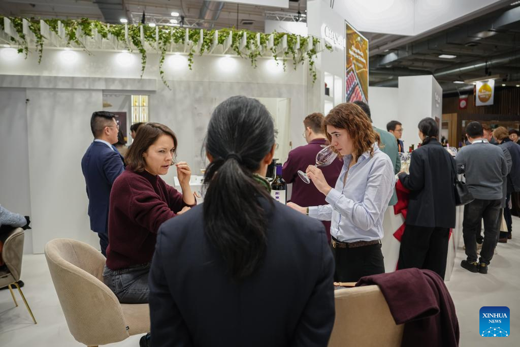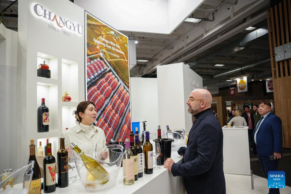 A customer tastes wine at the Changyu stand at the Wine Paris 2026 fair, at the Porte de Versailles exhibition center in Paris, France, Feb. 10, 2026. (Photo by Aurelien Morissard/Xinhua)