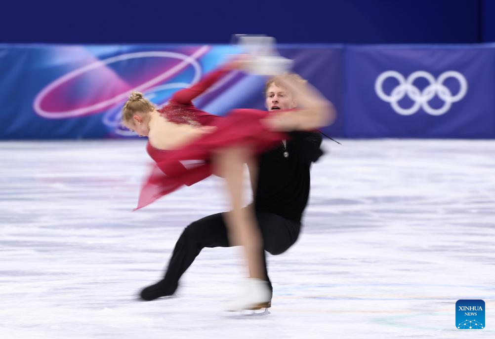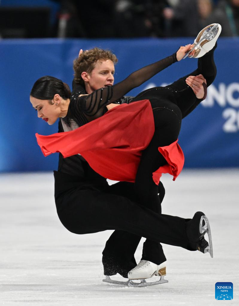 Holly Harris and Jason Chan of Australia perform during the free dance competition of figure skating ice dance at the Milan-Cortina 2026 Olympic Winter Games in Milan, Italy, Feb. 11, 2026. (Xinhua/Chen Yichen)