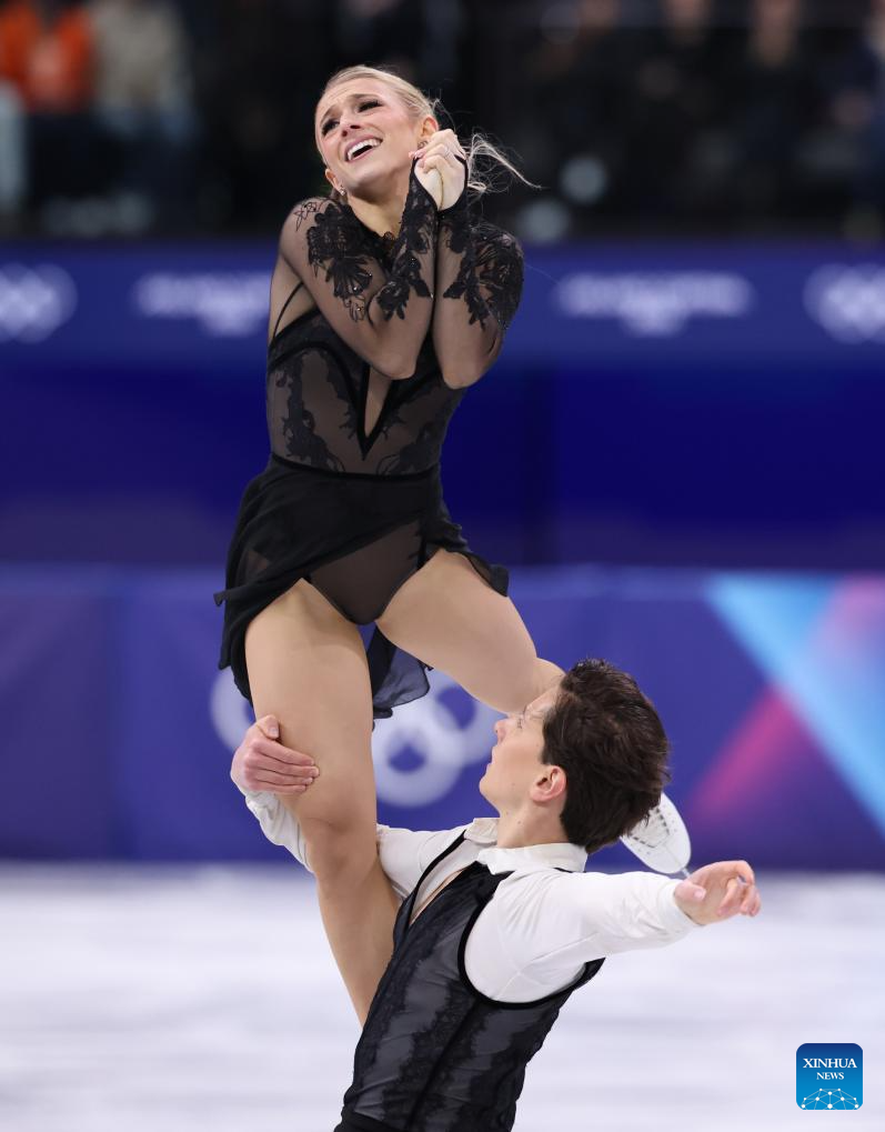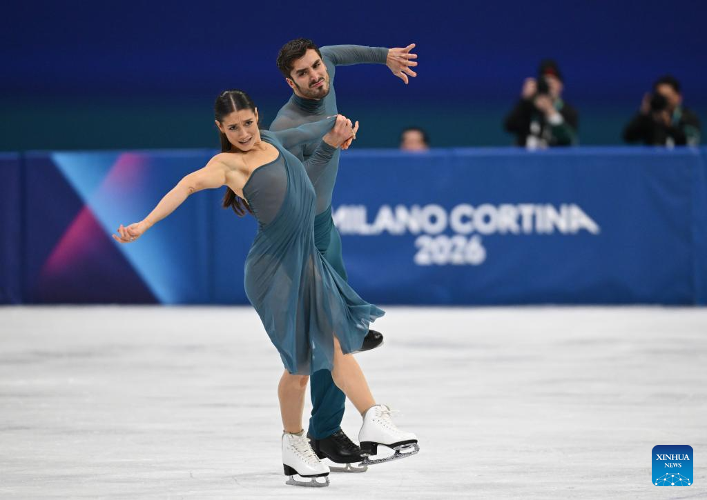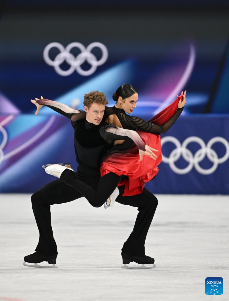 Marjorie Lajoie and Zachary Lagha of Canada perform during the free dance competition of figure skating ice dance at the Milan-Cortina 2026 Olympic Winter Games in Milan, Italy, Feb. 11, 2026. (Xinhua/Chen Yichen)