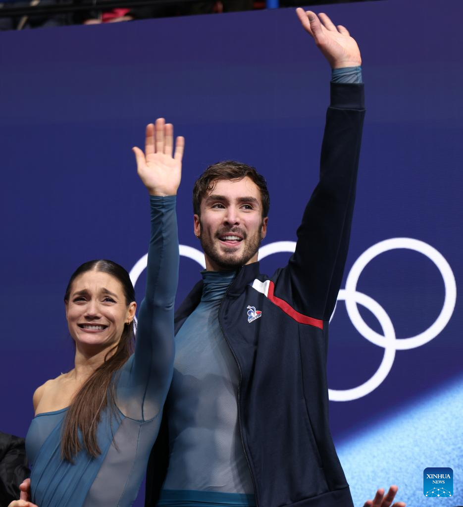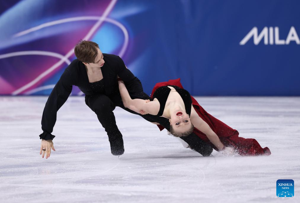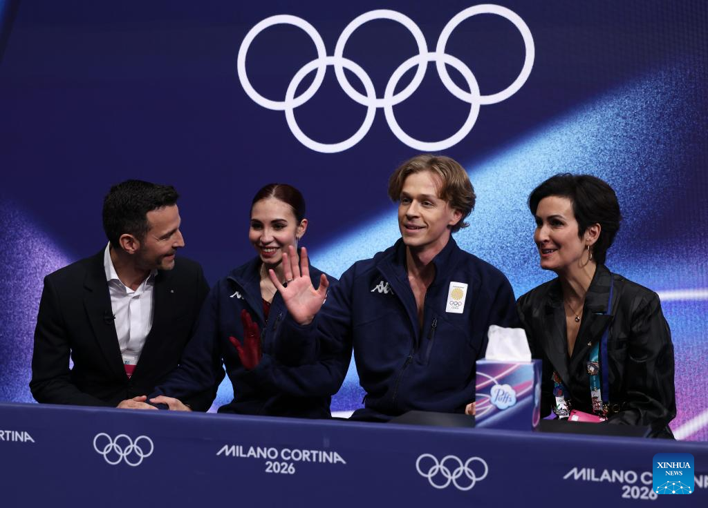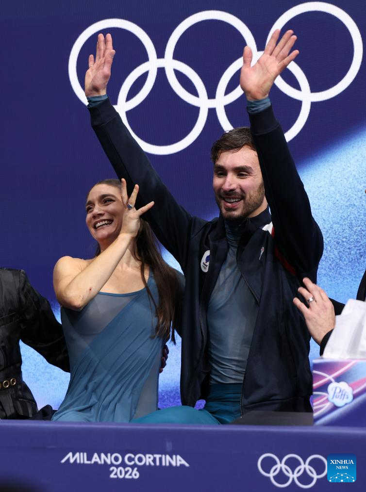 MILAN, Feb. 12 (Xinhua) -- Beijing 2022 champion Guillaume Cizeron retained his Olympic ice dance title at the Milan-Cortina Winter Games on Wednesday, winning with new partner Laurence Fournier Beaudry at the Milano Ice Skating Arena.