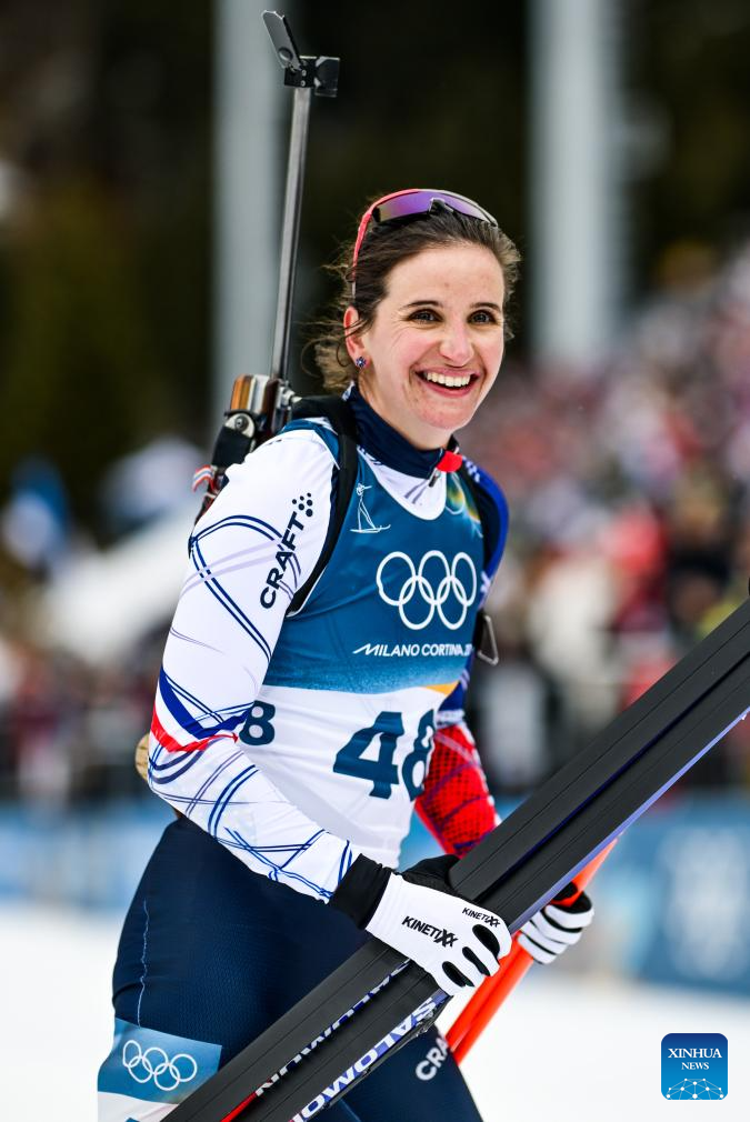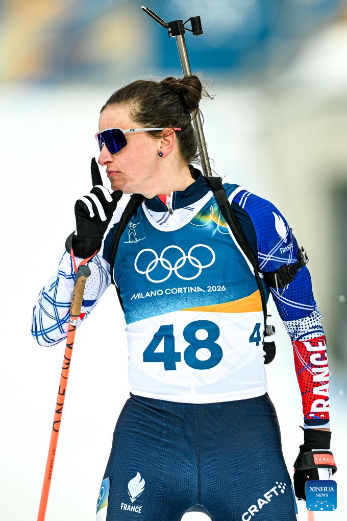 ANTERSELVA, Italy, Feb. 11 (Xinhua) -- France's Julia Simon staged a strong comeback to win the women's 15km individual biathlon in 41:15.6 at the Milan-Cortina Olympic Winter Games on Wednesday.