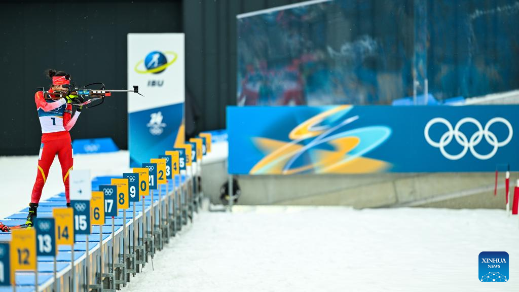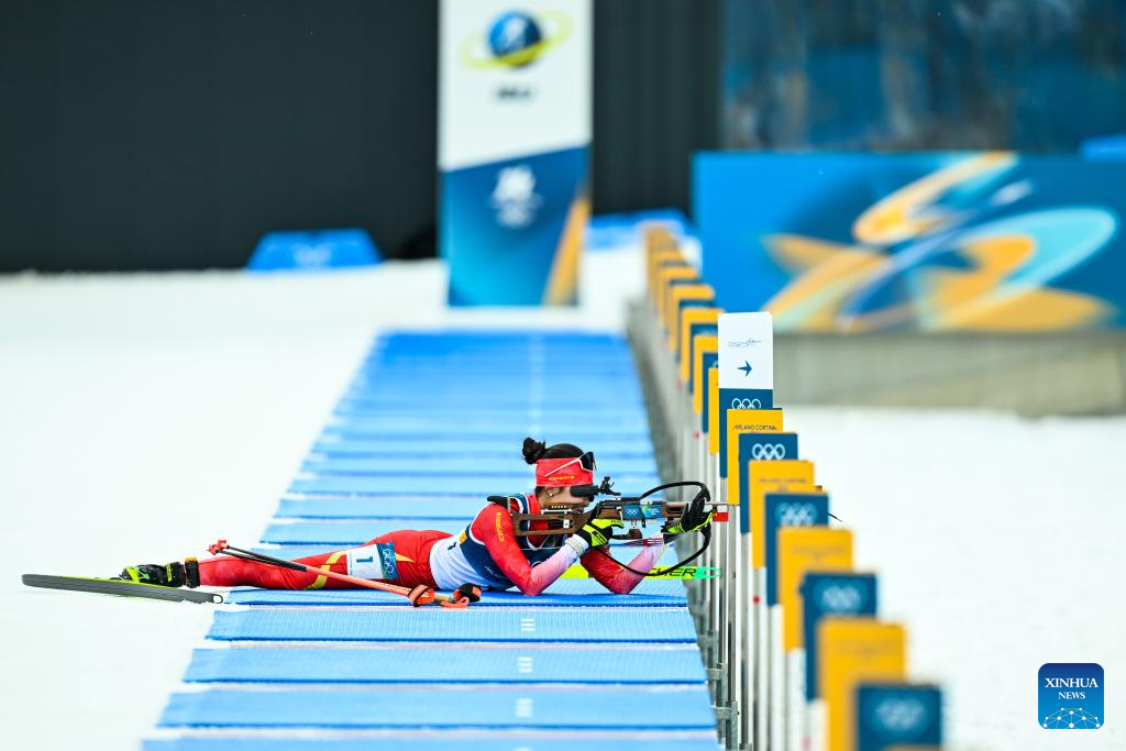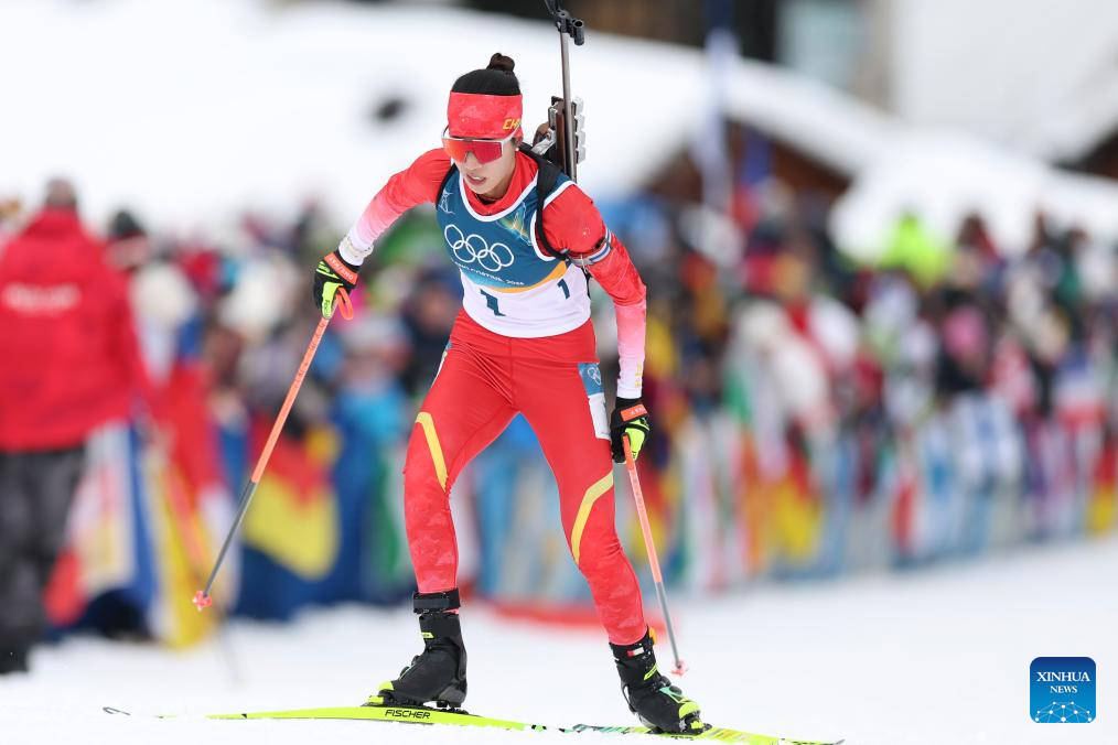 Chu Yuanmeng of China competes the biathlon women's 15km individual match at the Milan-Cortina 2026 Olympic Winter Games in Anterselva, Italy, Feb. 11, 2026. (Xinhua/Zhang Tao)