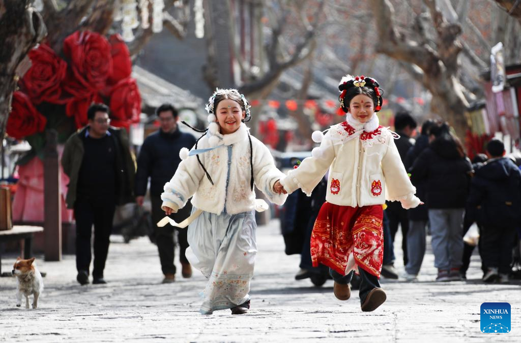 Children have fun at an ancient street in Xiangcheng County, central China's Henan Province, Feb. 10, 2026. (Photo by Niu Shupei/Xinhua)