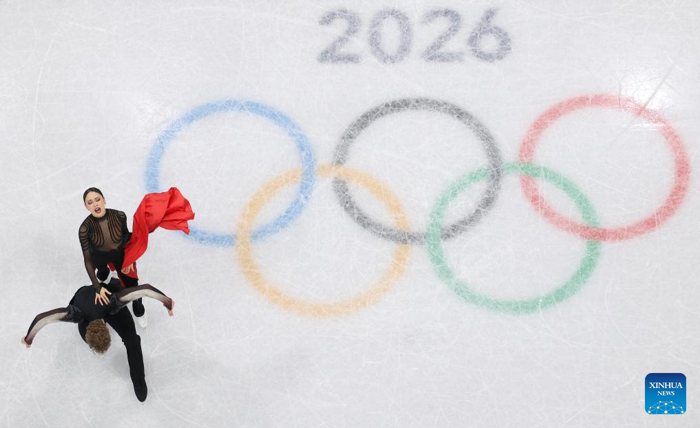 Madison Chock/Evan Bates (L) of the United States compete during the free dance of figure skating ice dance competition at the Milan-Cortina 2026 Olympic Winter Games in Milan, Italy, Feb. 11, 2026. (Xinhua/Li Ming)