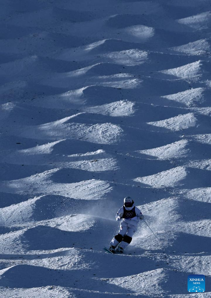 Jaelin Kauf of the United States competes during the freestyle skiing women's moguls final at the Milan-Cortina 2026 Olympic Winter Games in Livigno, Italy, Feb. 11, 2026. (Xinhua/Wang Peng)