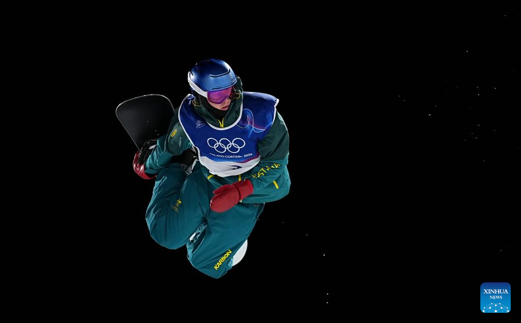 Scotty James of Australia competes during the men's snowboard halfpipe qualification at the Milan-Cortina 2026 Olympic Winter Games in Livigno, Italy, Feb. 11, 2026. (Xinhua/Zhang Hongxiang)