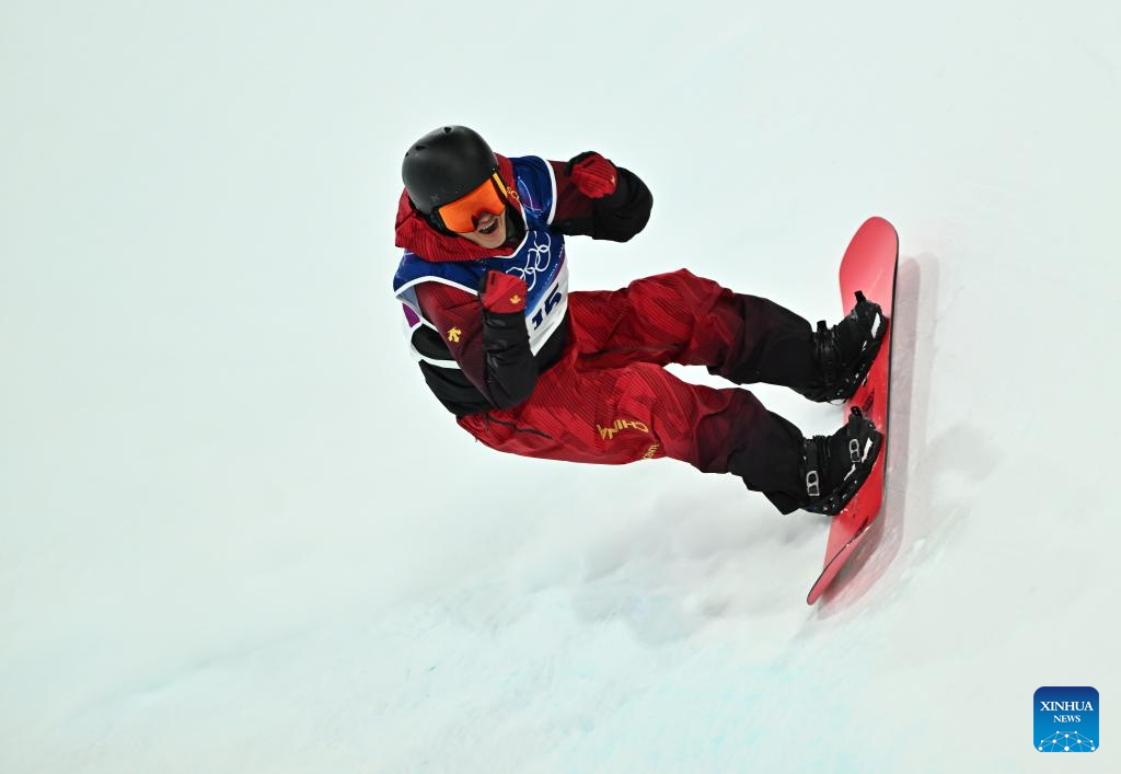 Ren Chongshuo of China competes during the men's snowboard halfpipe qualification at the Milan-Cortina 2026 Olympic Winter Games in Livigno, Italy, Feb. 11, 2026. (Xinhua/Wu Huiwo)