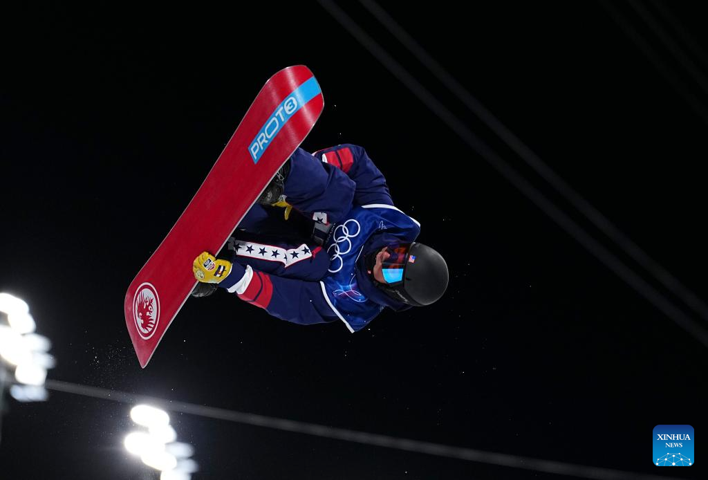 Jake Pates of the United States competes during the men's snowboard halfpipe qualification at the Milan-Cortina 2026 Olympic Winter Games in Livigno, Italy, Feb. 11, 2026. (Xinhua/Wu Huiwo)