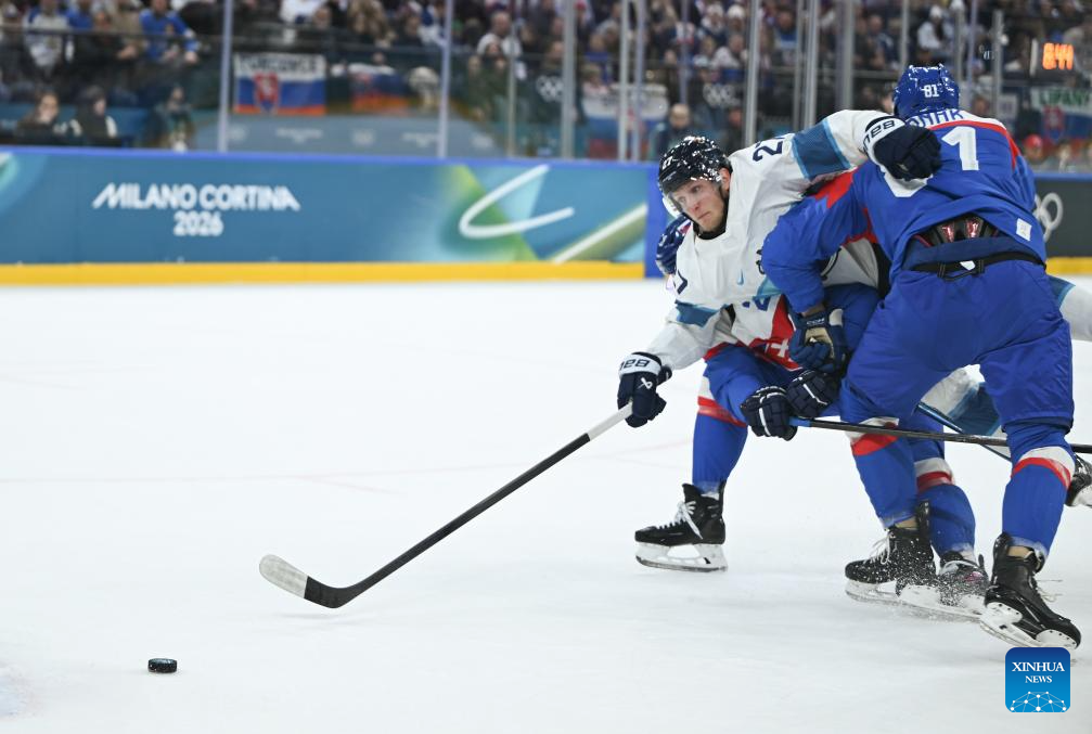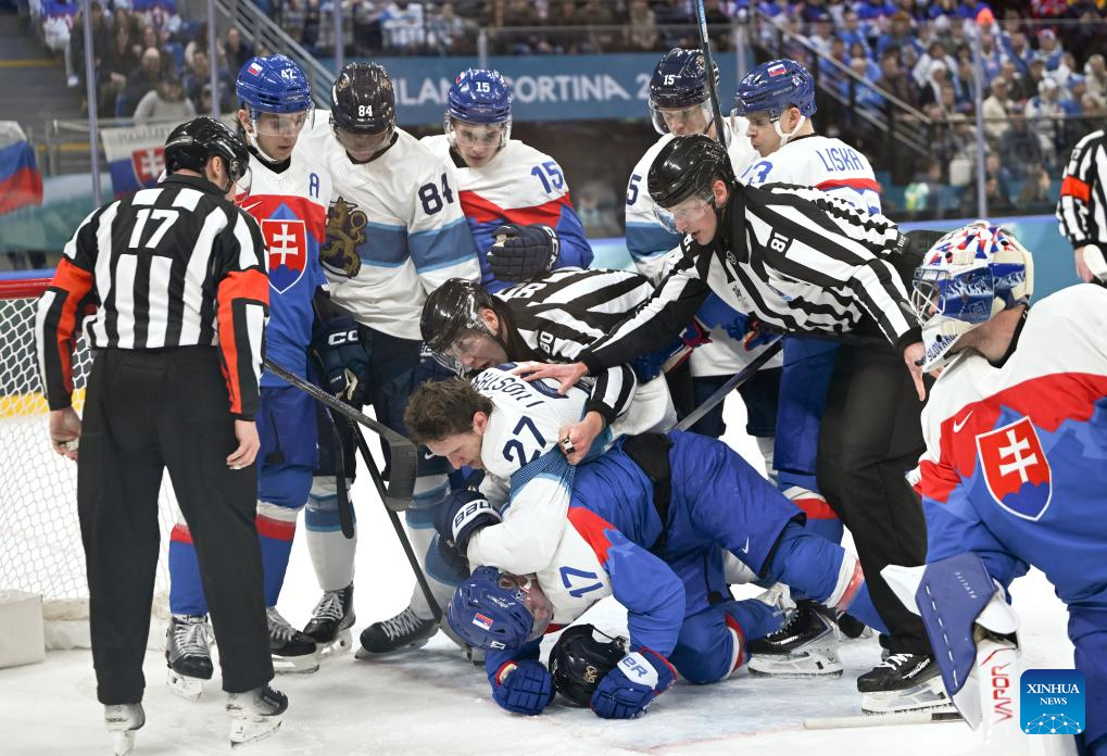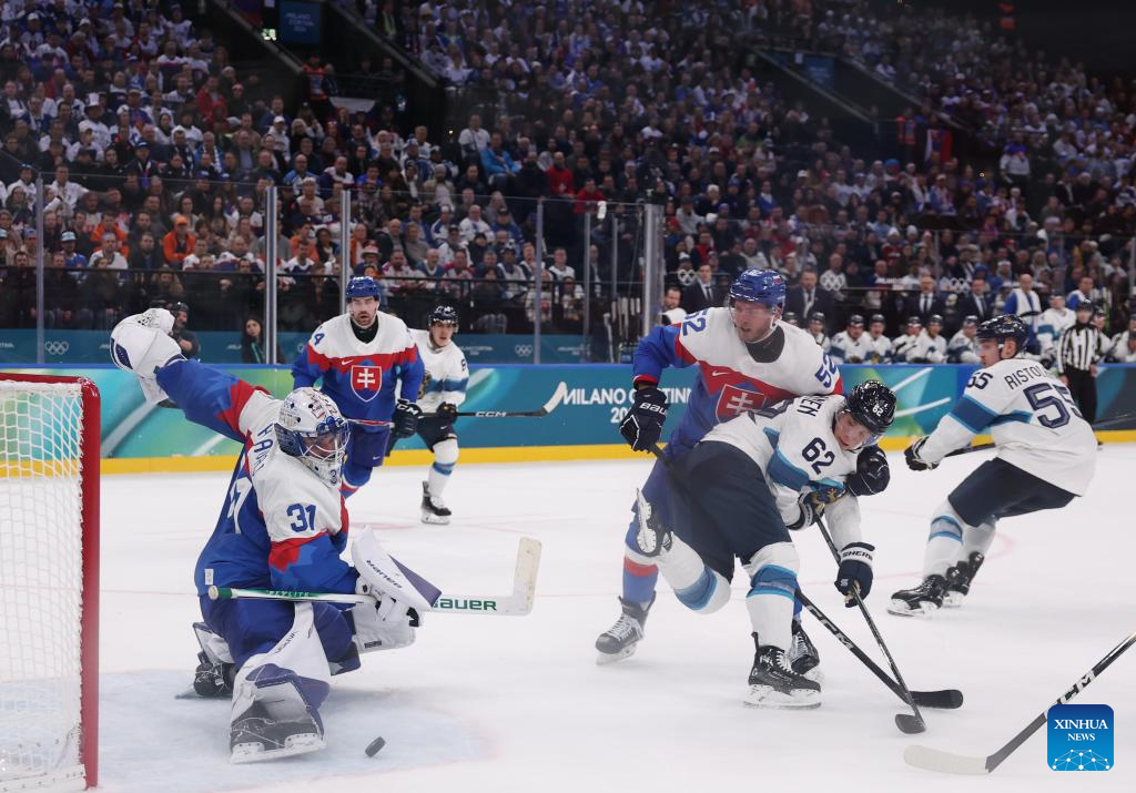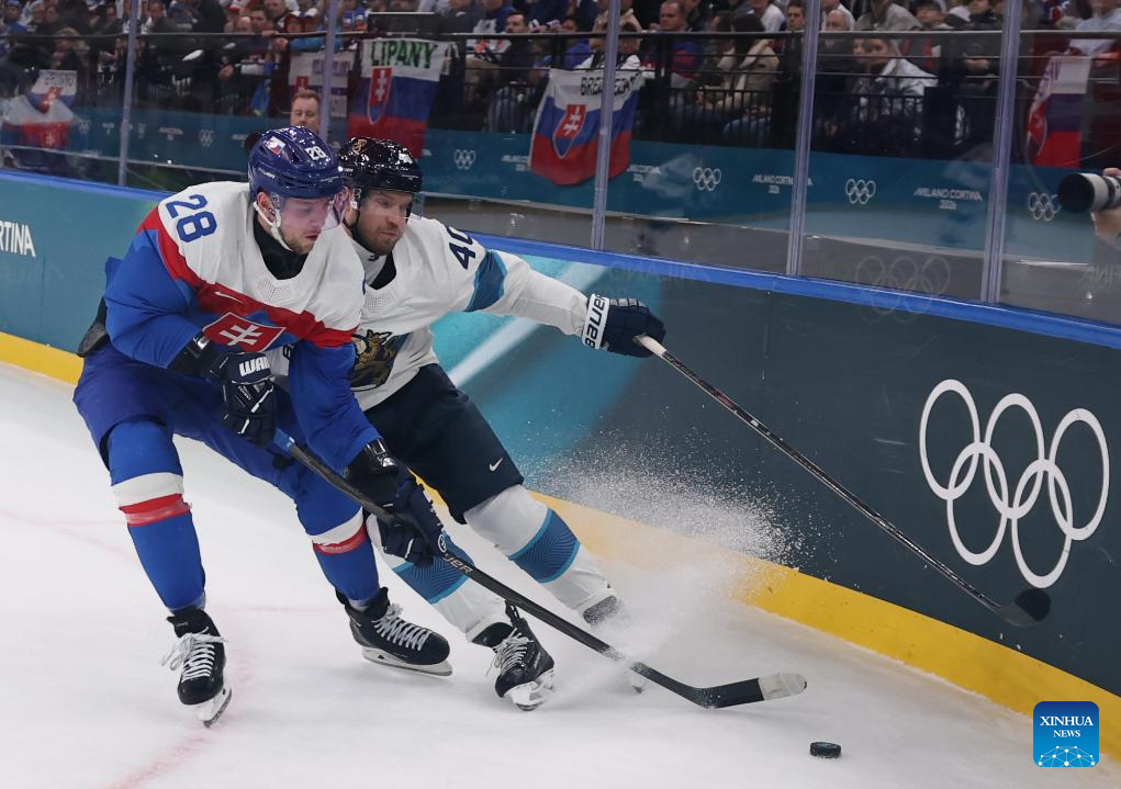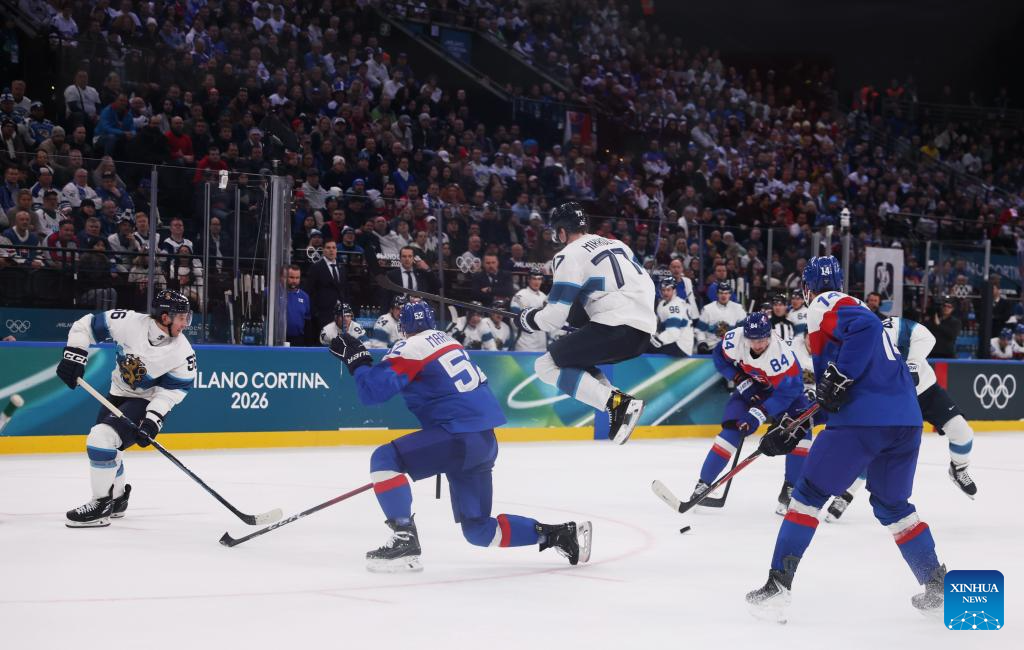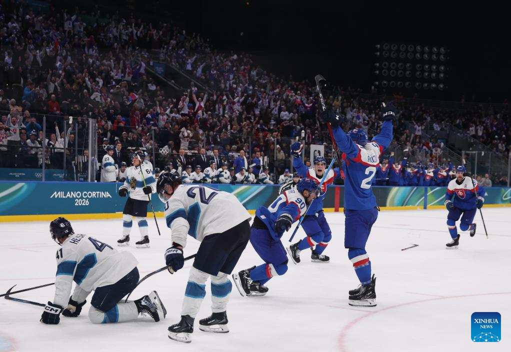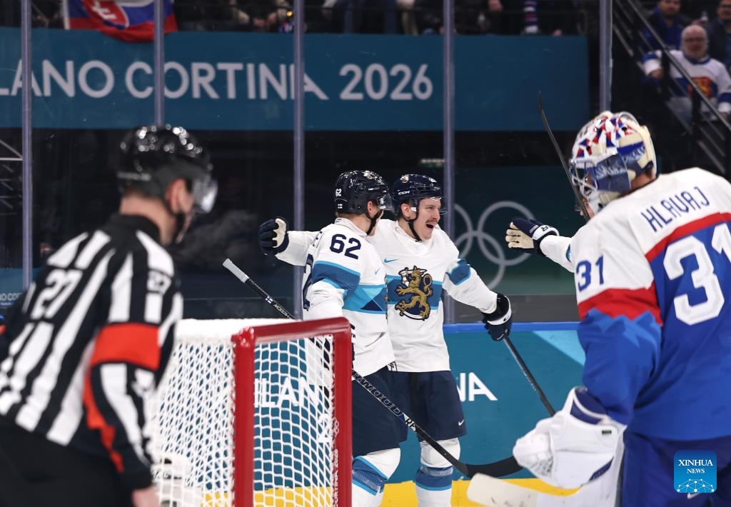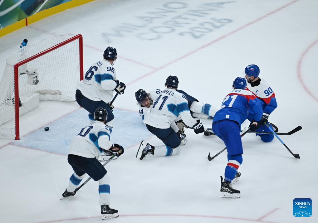 MILAN, Feb. 11 (Xinhua) -- The men's ice hockey competition of the Milan-Cortina 2026 Olympic Winter Games produced dramatic results on Wednesday, as Slovakia stunned titleholder Finland 4-1 and Sweden opened its campaign with a 5-2 win against host nation Italy.