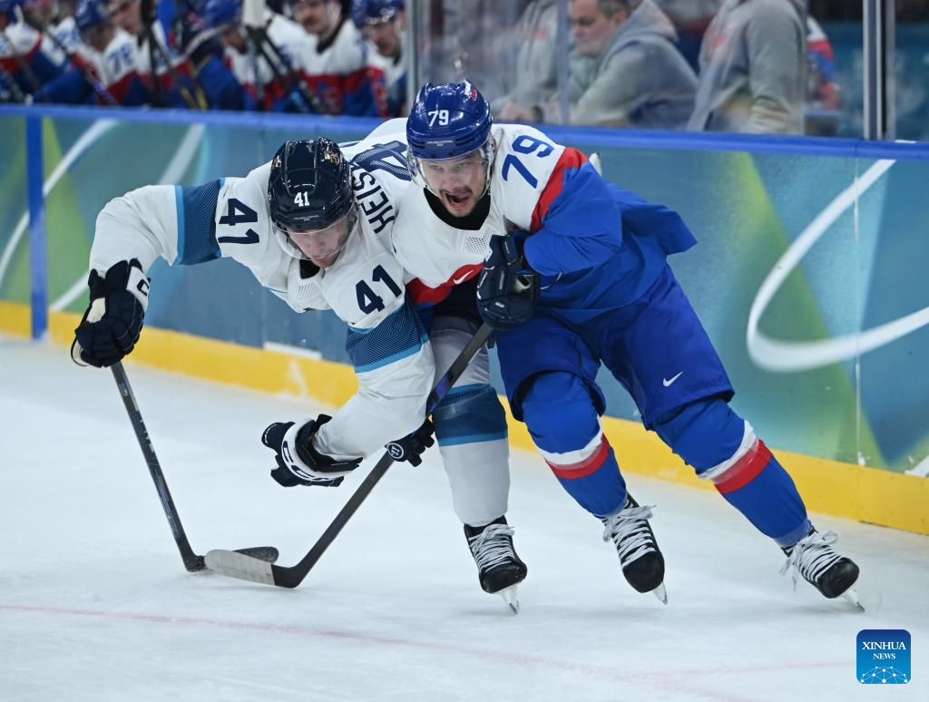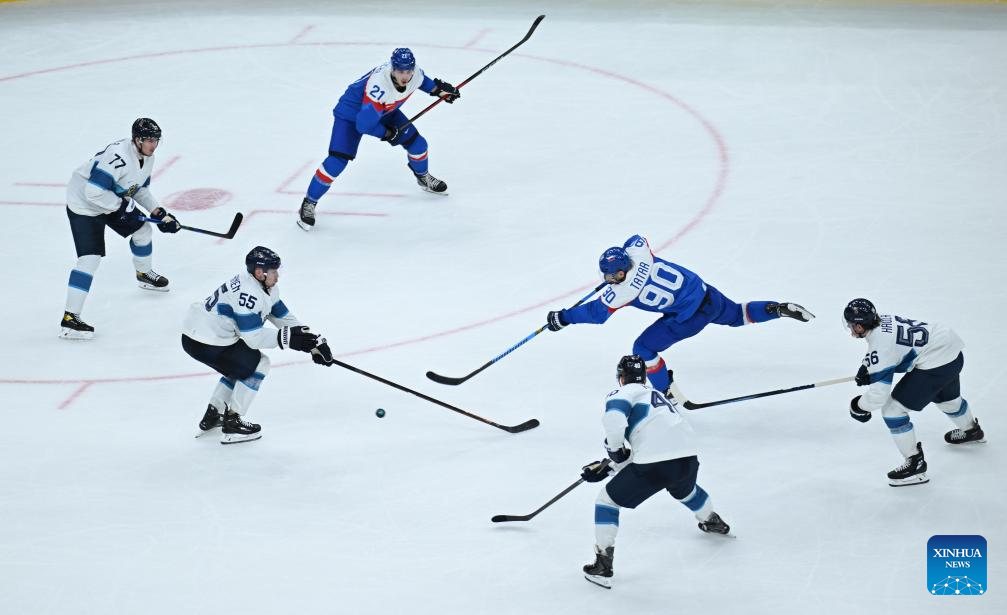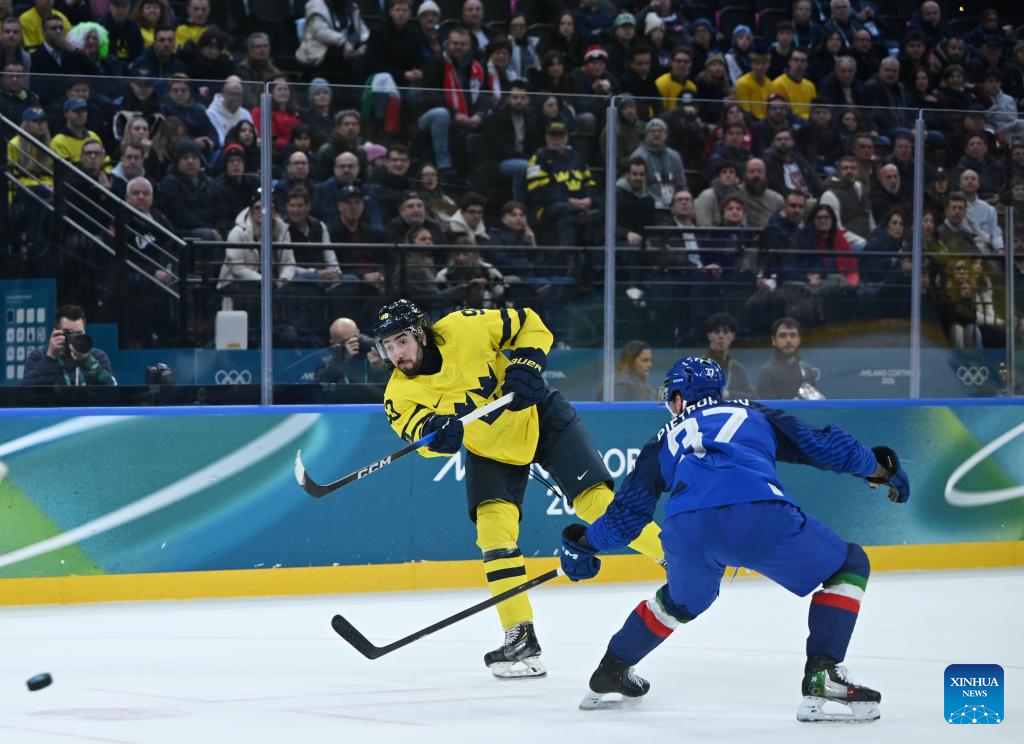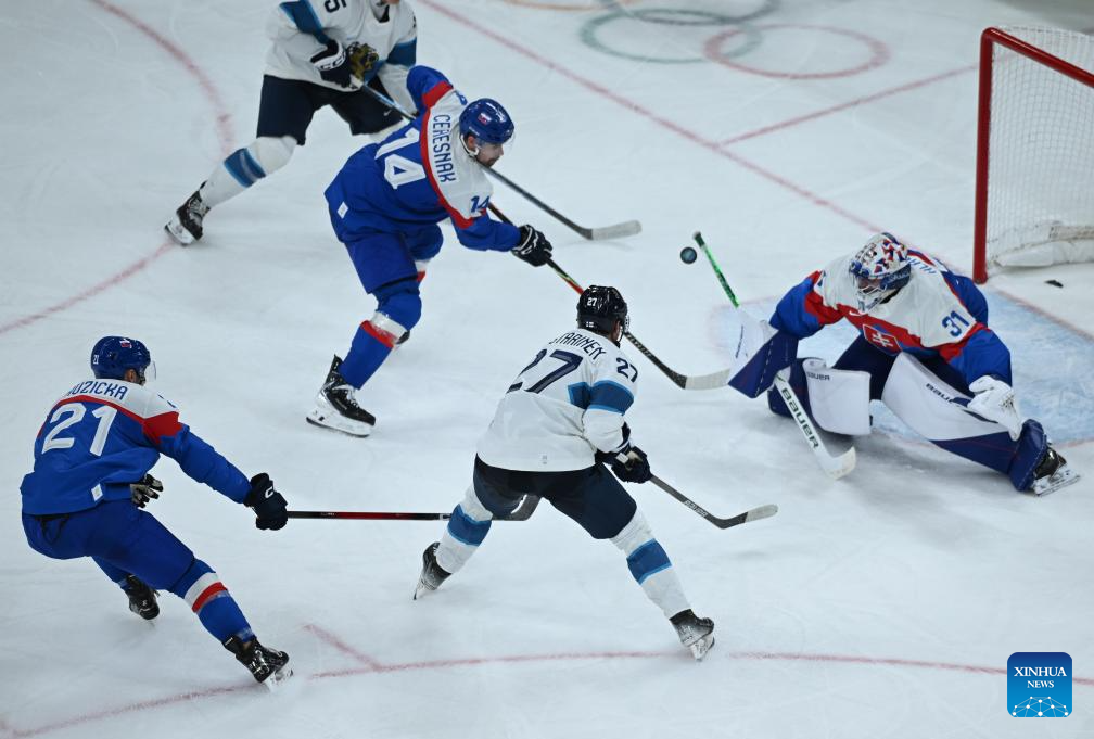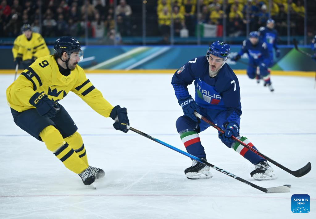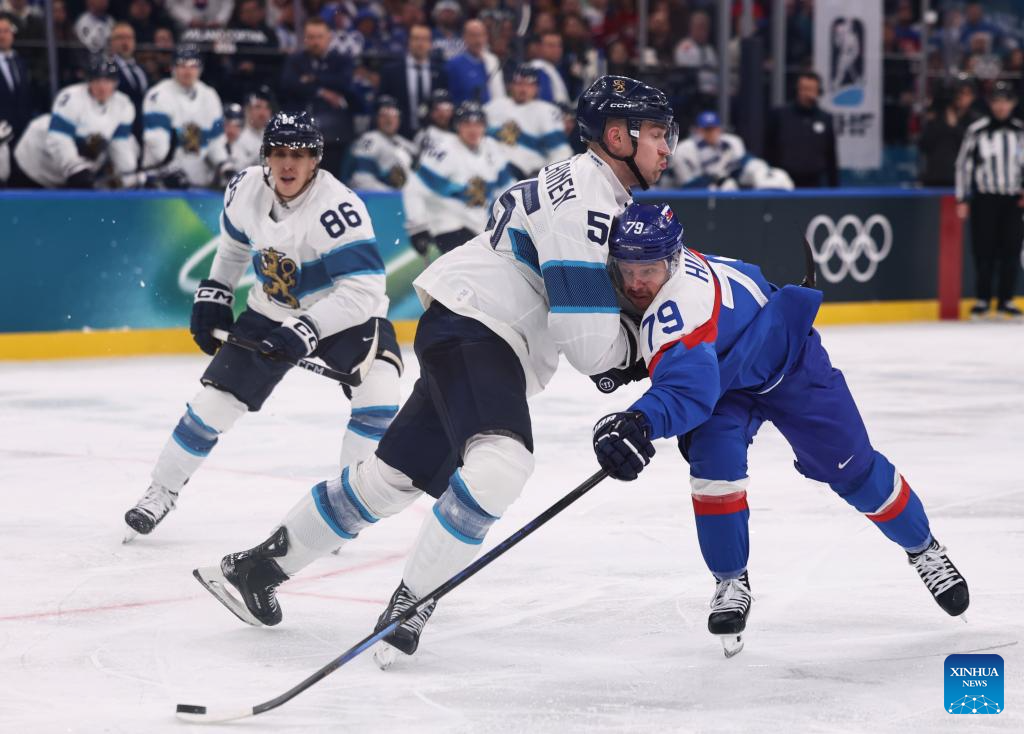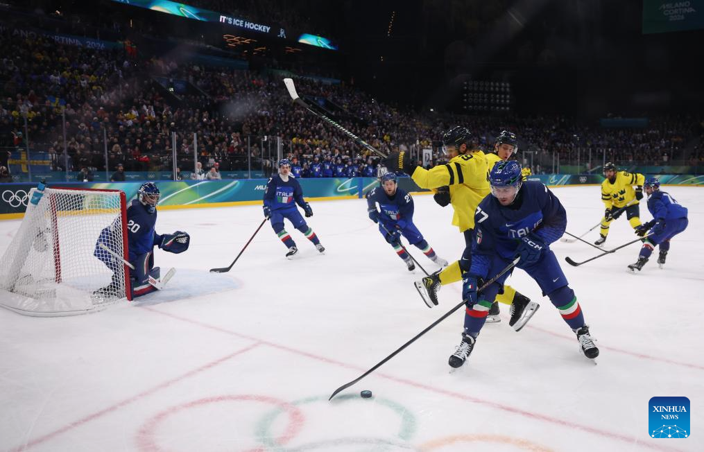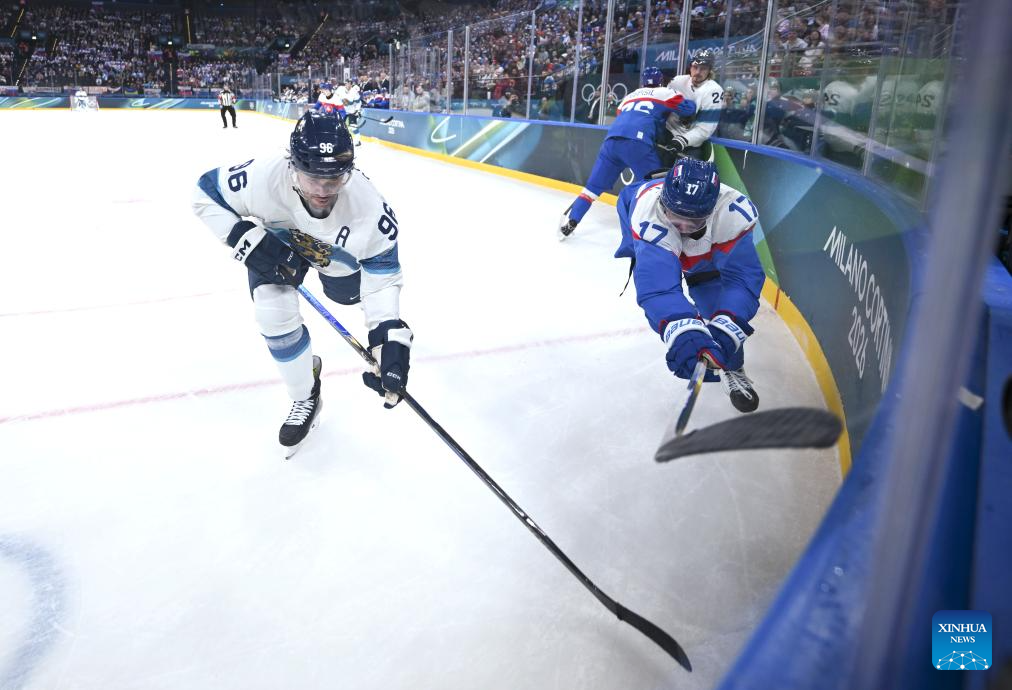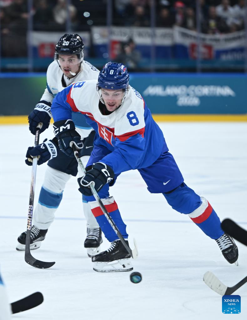 MILAN, Feb. 11 (Xinhua) -- The men's ice hockey competition of the Milan-Cortina 2026 Olympic Winter Games produced dramatic results on Wednesday, as Slovakia stunned titleholder Finland 4-1 and Sweden opened its campaign with a 5-2 win against host nation Italy.