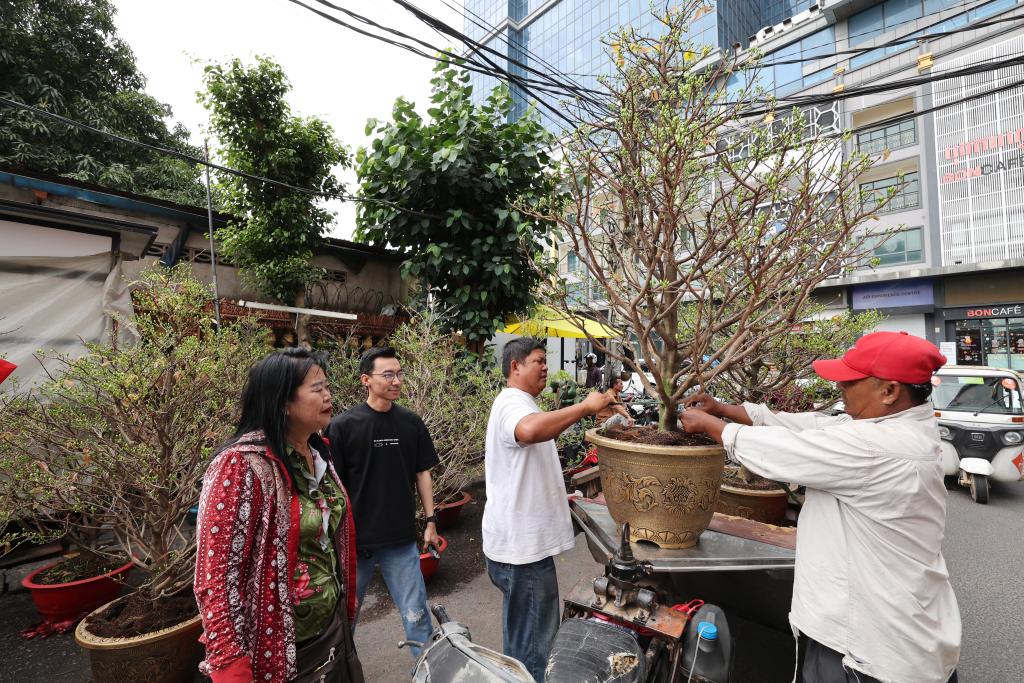 PHNOM PENH, Feb. 12 (Xinhua) -- Days ahead of the Chinese New Year, Cambodians of Chinese descent are busy decorating their houses with red paper-cuts, flowers, lanterns and Chinese couplets to welcome the New Year.
