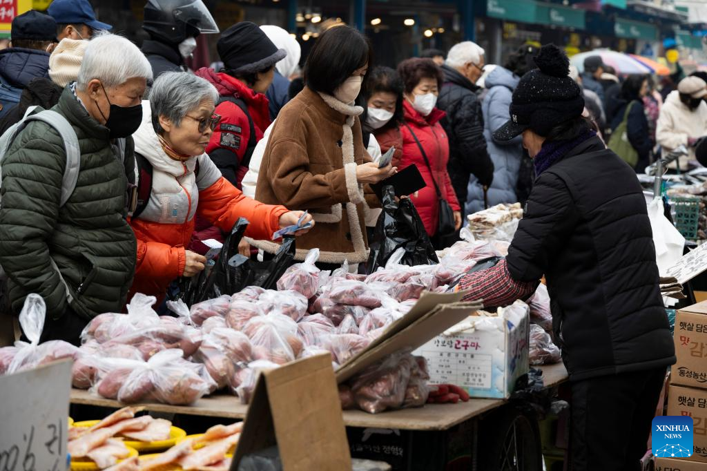 People visit a market ahead of the Lunar New Year holiday in Seoul, South Korea, Feb. 12, 2026. (Photo by Jun Hyosang/Xinhua)