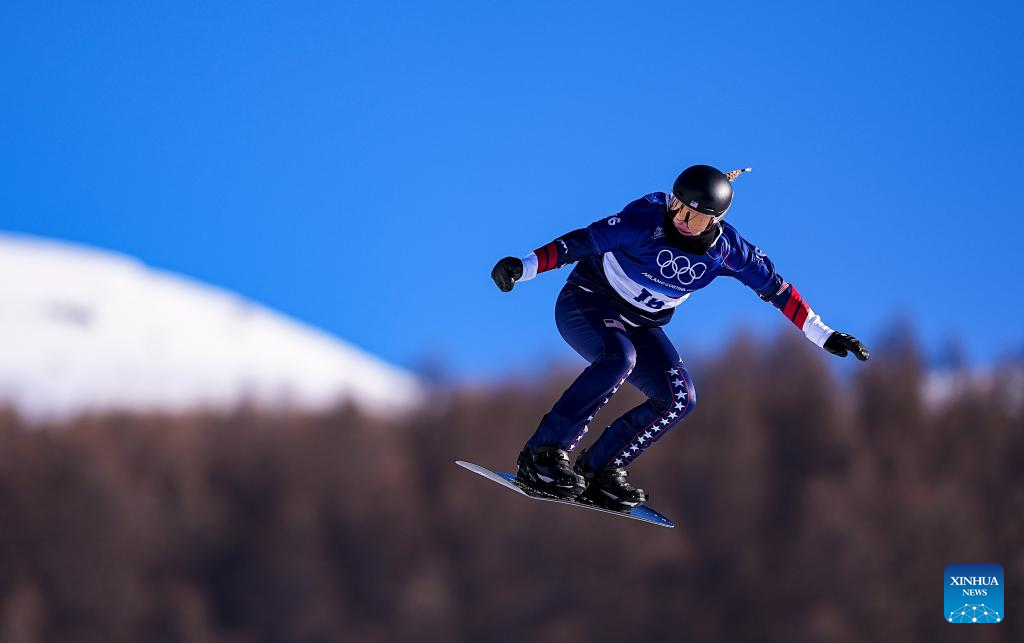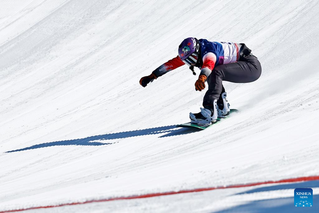 Brianna Schnorrbusch of the United States competes during the snowboard women's cross seeding at the Milan-Cortina 2026 Olympic Winter Games in Livigno, Italy, Feb. 13, 2026. (Xinhua/Wu Huiwo)