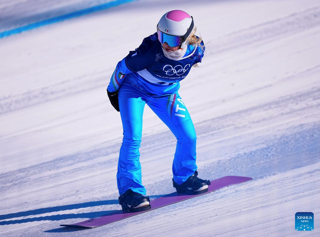 Michela Moioli of Italy competes during the snowboard women's cross seeding at the Milan-Cortina 2026 Olympic Winter Games in Livigno, Italy, Feb. 13, 2026. (Xinhua/Wu Huiwo)