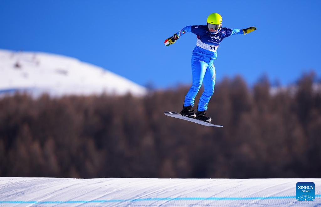 Lisa Francesia Boirai of Italy competes during the snowboard women's cross seeding at the Milan-Cortina 2026 Olympic Winter Games in Livigno, Italy, Feb. 13, 2026. (Xinhua/Wu Huiwo)