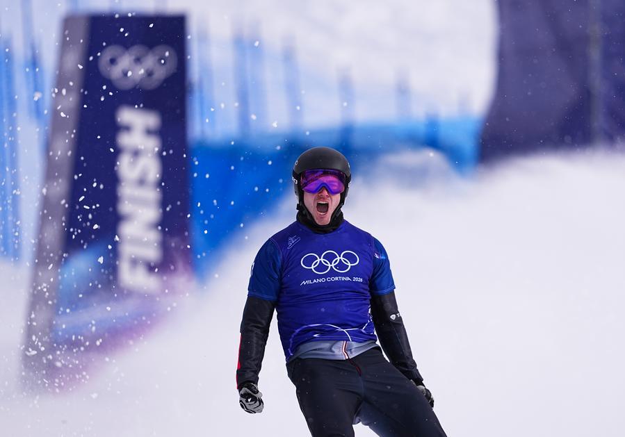 LIVIGNO, Italy, Feb. 12 (Xinhua) -- Austria's Alessandro Haemmerle edged out Eliot Grondin of Canada in a dramatic photo finish to successfully defend his men's snowboard cross title at the Milan-Cortina 2026 Olympic Winter Games on Thursday.