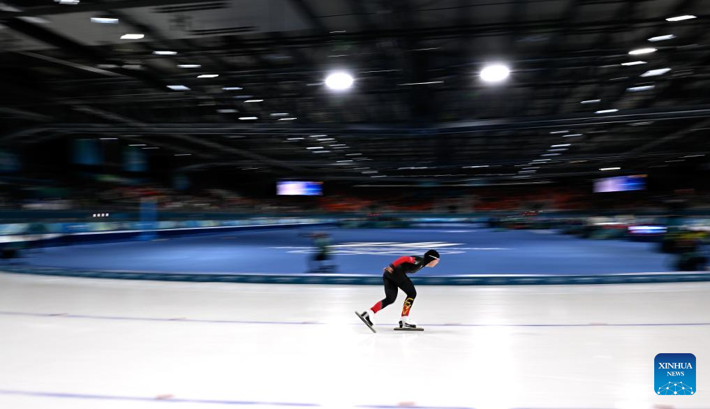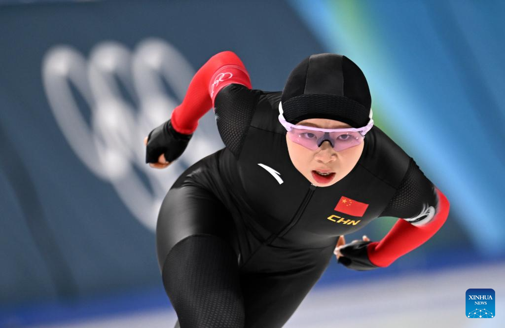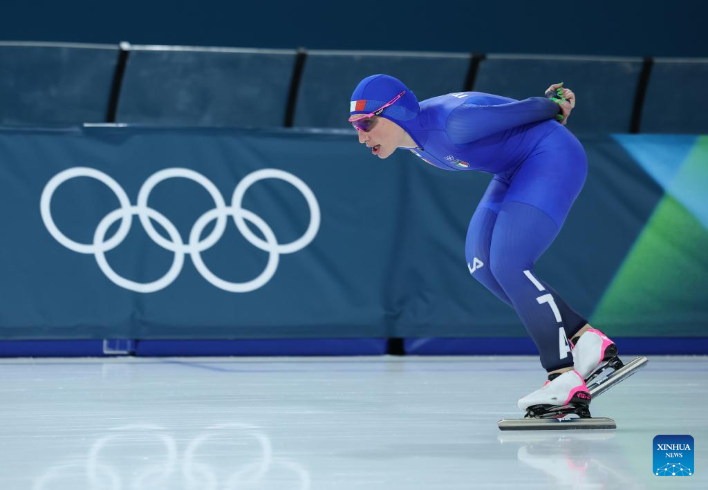 Tai Zhien of China competes during the speed skating women's 5000m final at the Milan-Cortina 2026 Olympic Winter Games in Milan, Italy, Feb. 12, 2026. (Xinhua/Wu Wei)