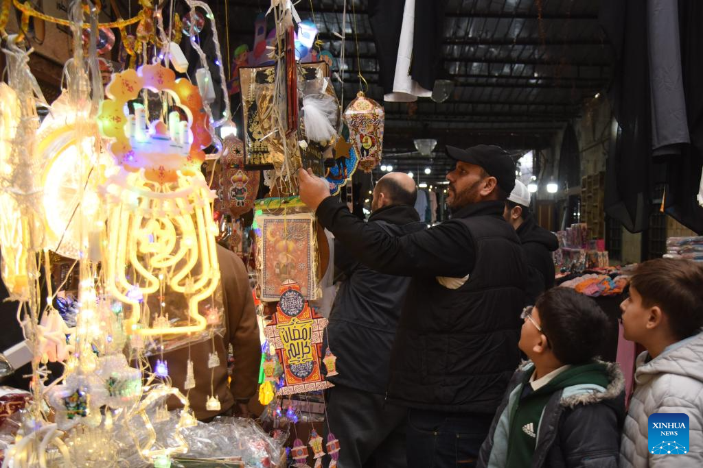 People buy Ramadan decorations in Tripoli, Lebanon, Feb. 12, 2026. (Xinhua/Khaled Habashiti)