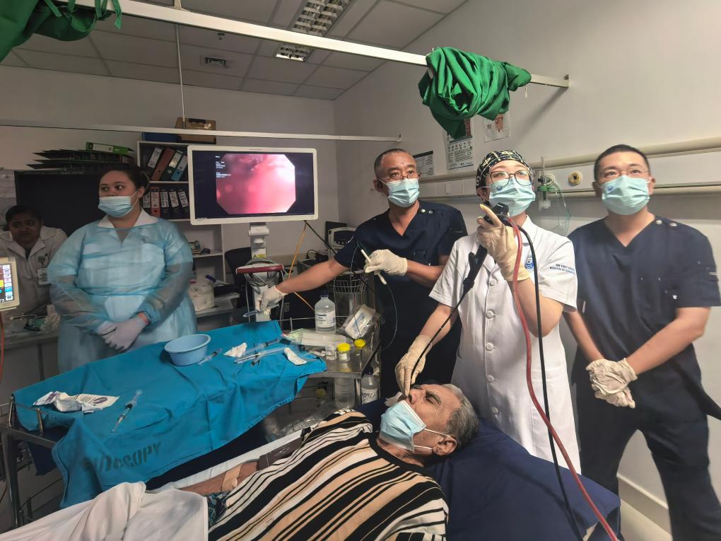 After a comprehensive preoperative assessment, Liu Han, a physician specializing in respiratory and critical care medicine from the Chinese team, performed the bronchoscopy along with bronchoalveolar lavage and biopsy.
