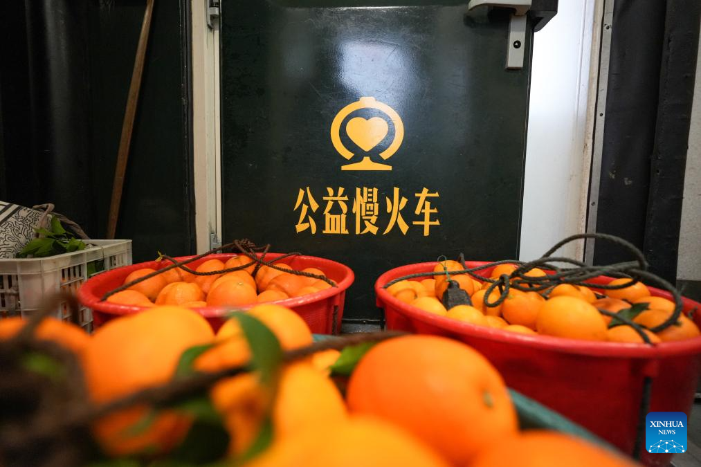 This photo taken on Feb. 12, 2026 shows fresh fruits on the train No. 7272.
