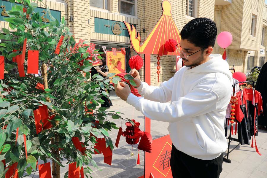 At the heart of the celebration stands a "wish tree," its branches gradually filling with handwritten cards fluttering like colorful leaves. Many Iraqis write their hopes in Arabic for the new year: peace, prosperity, educational opportunities, and stronger ties between Iraq and China. Each note tied to the tree carries a prayer across cultures.