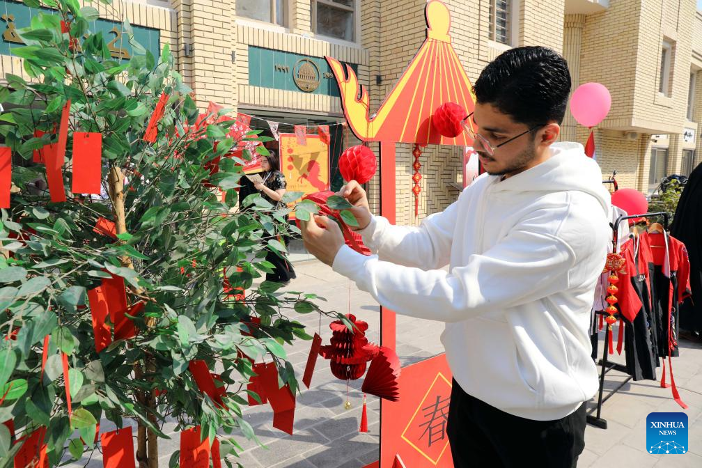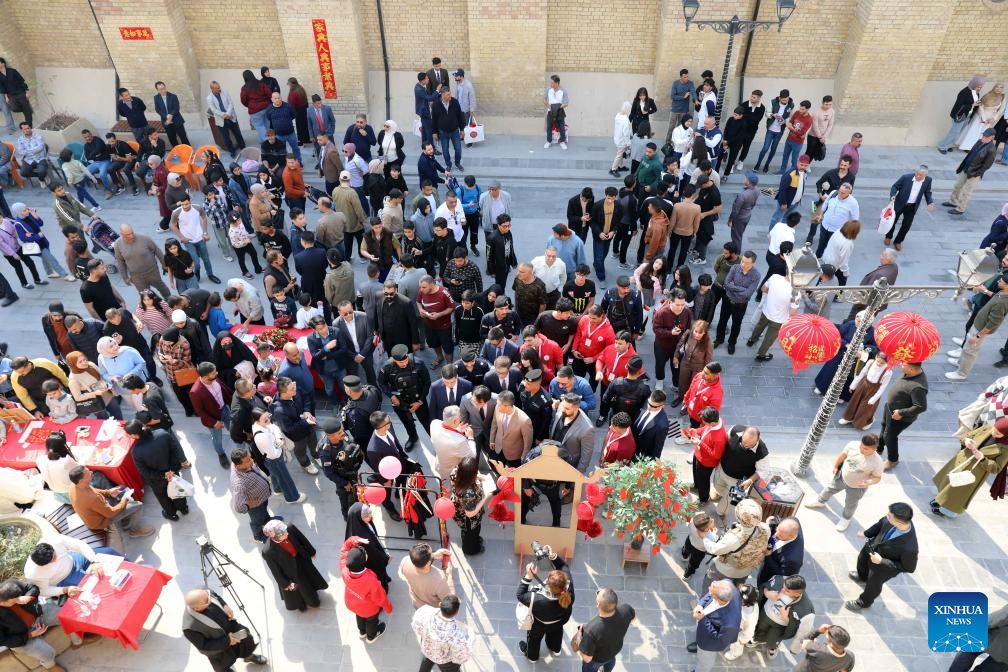 People participate in the Chinese New Year celebration on al-Mutanabbi Street in central Baghdad, Iraq, on Feb. 13, 2026. (Xinhua/Khalil Dawood)