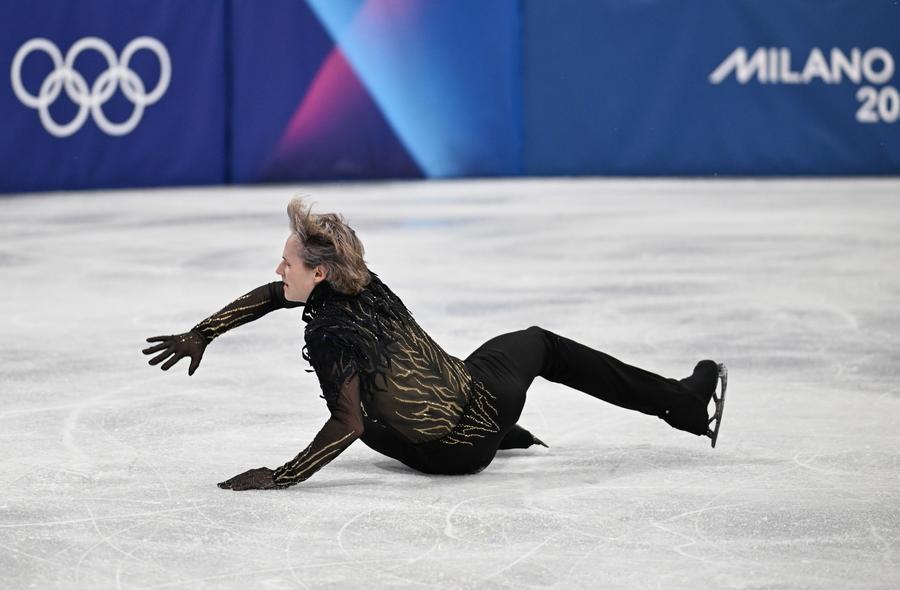 Mikhail Shaidorov of Kazakhstan celebrates after winning the men's single skating free skating of figure skating event at the Milan-Cortina 2026 Olympic Winter Games in Milan, Italy, Feb. 13, 2026. (Xinhua/Li Ming)Mikhail Shaidorov of Kazakhstan competes during the free skating of the men single skating match for figure skating event at the Milan-Cortina 2026 Olympic Winter Games in Milan, Italy, Feb. 13, 2026. (Xinhua/Cheng Min)Gold medalist Mikhail Shaidorov (C) of Kazakhstan celebrates on the podium after the men's single skating free skating of figure skating event at the Milan-Cortina 2026 Olympic Winter Games in Milan, Italy, Feb. 13, 2026. (Xinhua/Xue Yuge)Ilia Malinin of the United States falls during the men's single skating free skating of figure skating event at the Milan-Cortina 2026 Olympic Winter Games in Milan, Italy, Feb. 13, 2026. (Xinhua/Cheng Min)Ilia Malinin of the United States reacts after his performance during the men's single skating free skating of figure skating event at the Milan-Cortina 2026 Olympic Winter Games in Milan, Italy, Feb. 13, 2026. (Xinhua/Li Ming)