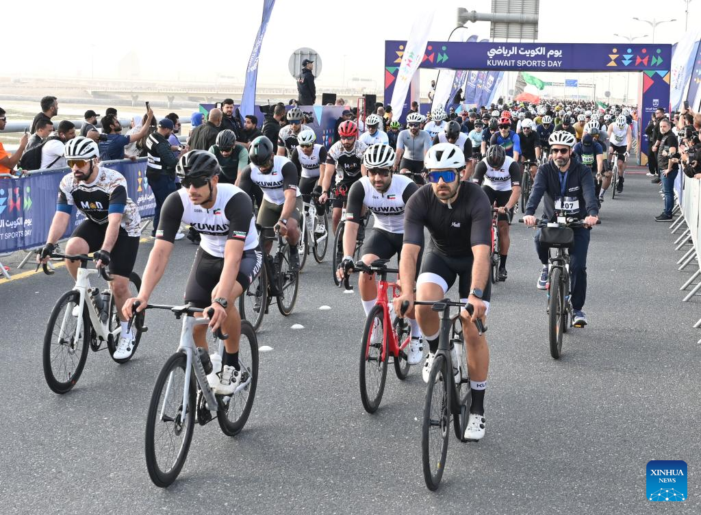 People participate in the Sports Day event in Kuwait City, Kuwait, Feb. 14, 2026. (Photo by Asad/Xinhua)