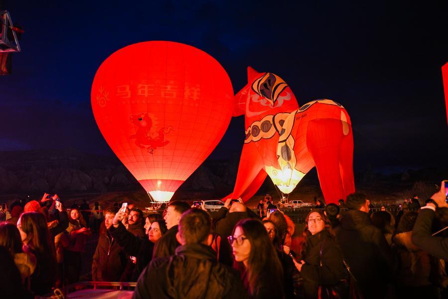 Tourists visit a food street decorated with Chinese festive elements during a Chinese Spring Festival celebration in Cappadocia, Türkiye, Feb. 14, 2026. (Xinhua/Liu Lei)Hot air balloons themed on the Chinese Year of the Horse are inflated during a Chinese Spring Festival celebration in Cappadocia, Türkiye, Feb. 14, 2026. (Xinhua/Liu Lei)Tourists visit a food street decorated with Chinese festive elements during a Chinese Spring Festival celebration in Cappadocia, Türkiye, Feb. 14, 2026. (Xinhua/Liu Lei)Tourists visit a food street decorated with Chinese festive elements during a Chinese Spring Festival celebration in Cappadocia, Türkiye, Feb. 14, 2026. (Xinhua/Liu Lei)■
