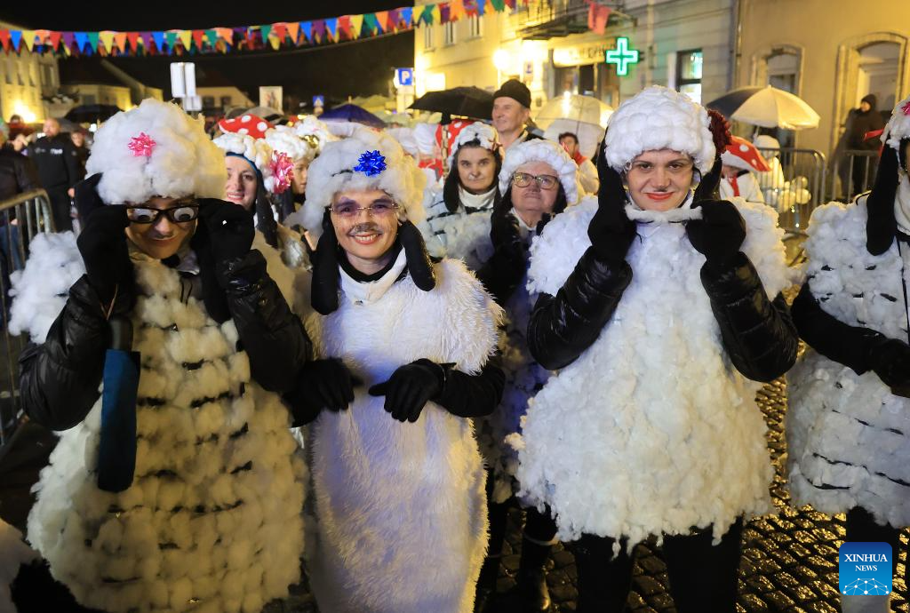 People participate in a carnival parade in Samobor, Croatia, Feb. 14, 2026. (Marko Prpic/PIXSELL via Xinhua)