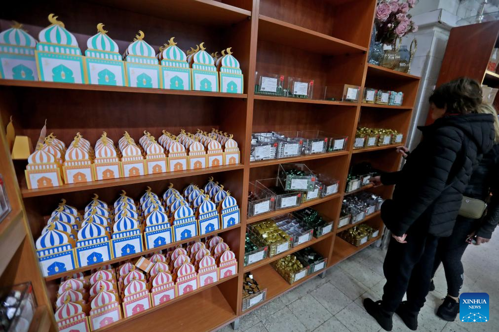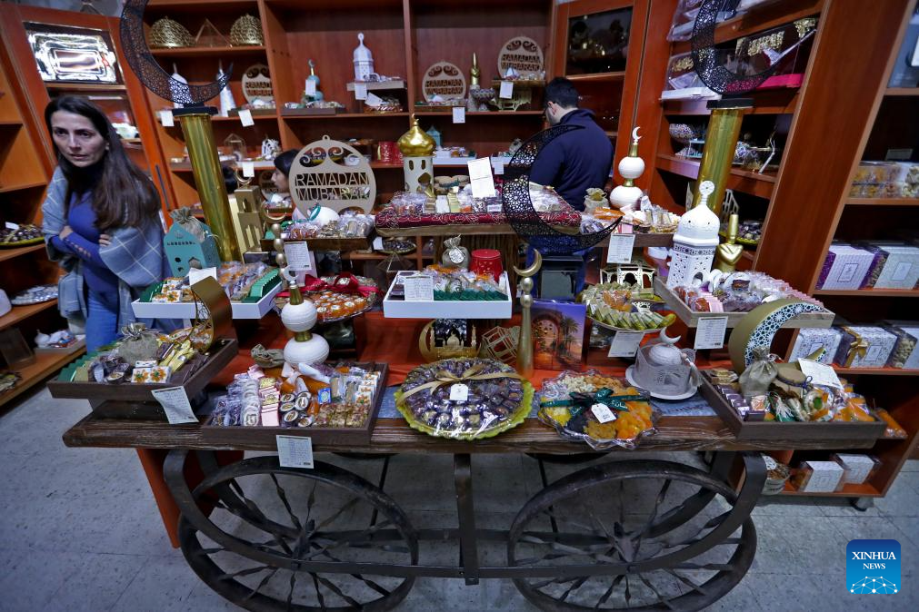 This photo taken on Feb. 14, 2026 shows people buying foods in preparation for Ramadan in Beirut, Lebanon. (Xinhua/Bilal Jawich)