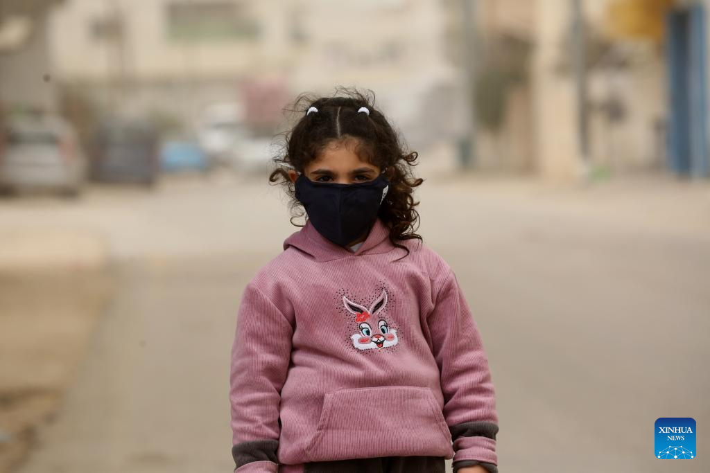 A Palestinian girl is seen on a street during a dust storm in the West Bank city of Nablus on Feb. 14, 2026. (Photo by Nidal Eshtayeh/Xinhua)