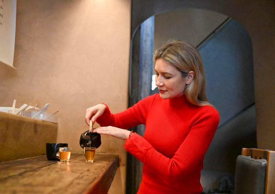 Aleksandra Antonenko drinks tea at a restaurant in Shanghai, east China, Feb. 6, 2026. (Xinhua/Chen Haoming)Aleksandra Antonenko tastes dumplings at a restaurant in Shanghai, east China, Feb. 6, 2026. (Xinhua/Chen Haoming)Aleksandra Antonenko takes short videos at a traditional crafts booth of Yuyuan Garden shopping mall in Shanghai, east China, Feb. 6, 2026. (Xinhua/Chen Haoming)Aleksandra Antonenko (R) tries her hands with paper-cutting in Shanghai, east China, Feb. 6, 2026. (Xinhua/Chen Haoming)Aleksandra Antonenko poses for a photo with a Suzhou embroidery piece at a traditional crafts booth of Yuyuan Garden shopping mall in Shanghai, east China, Feb. 6, 2026. (Xinhua/Chen Haoming)■