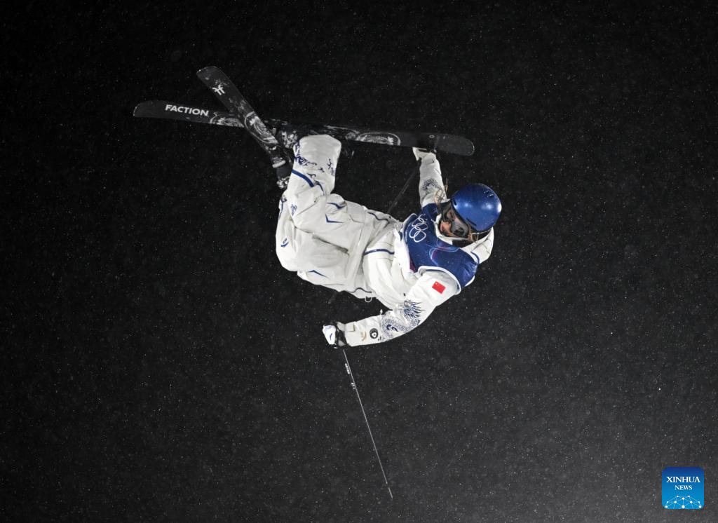 Liu Mengting of China competes during the freestyle skiing women's freeski big air final at the Milan-Cortina 2026 Olympic Winter Games in Livigno, Italy, Feb. 16, 2026. (Xinhua/Hu Chao)