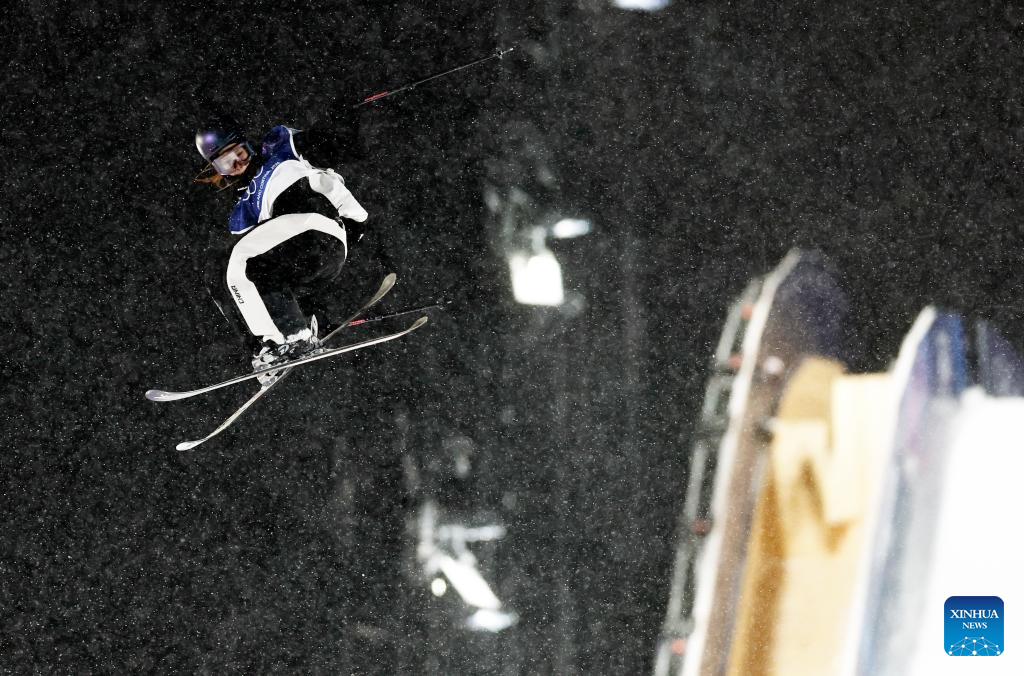 Liu Mengting of China competes during the freestyle skiing women's freeski big air final at the Milan-Cortina 2026 Olympic Winter Games in Livigno, Italy, Feb. 16, 2026. (Xinhua/Wang Peng)