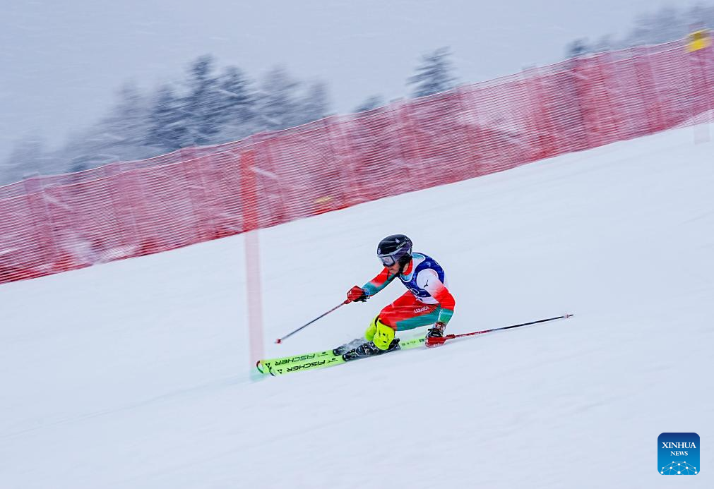 Ariunbat Altanzul of Mongolia competes during the alpine skiing men's slalom event at the Milan-Cortina 2026 Olympic Winter Games in Bormio, Italy, Feb. 16, 2026. (Xinhua/Hu Huhu)