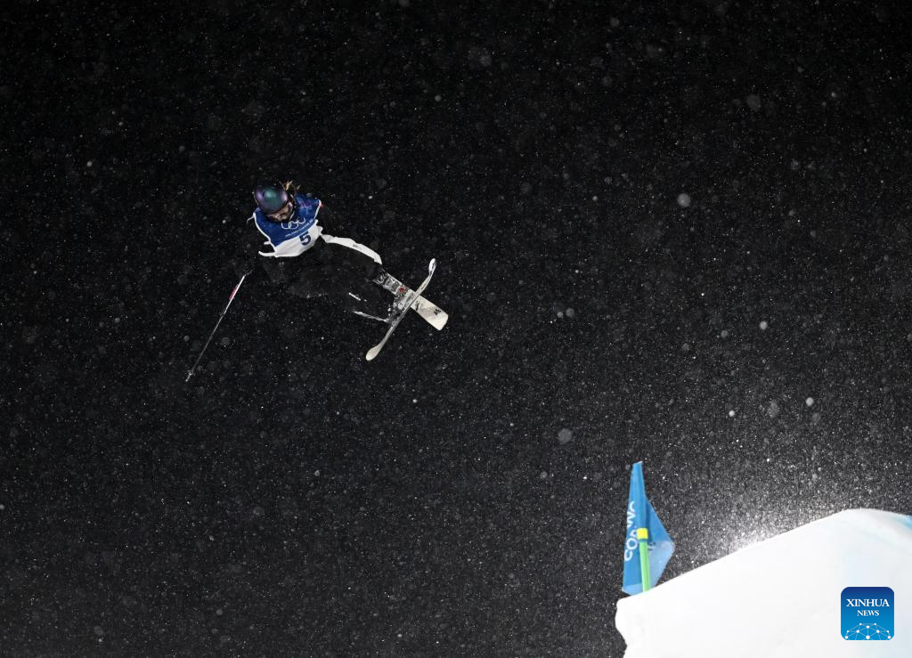 Liu Mengting of China competes during the freestyle skiing women's freeski big air final at the Milan-Cortina 2026 Olympic Winter Games in Livigno, Italy, Feb. 16, 2026. (Xinhua/Xia Yifang)