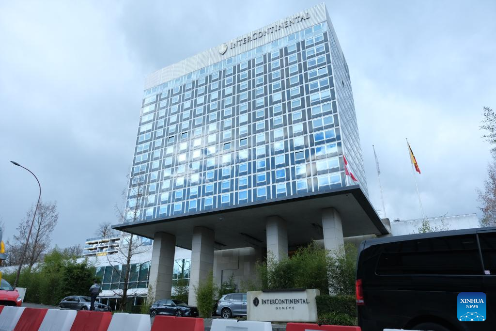 This photo taken on Feb. 17, 2026 shows the site for a new round of trilateral talks among Ukraine, the United States and Russia, in Geneva, Switzerland. A new round of trilateral talks among Ukraine, the United States and Russia began in Geneva on Tuesday. The two-day negotiations, held behind closed doors, are expected to address territorial issues, military matters, political and economic concerns, as well as security arrangements, Russia's state news agency TASS reported. (Xinhua/Ma Ruxuan)