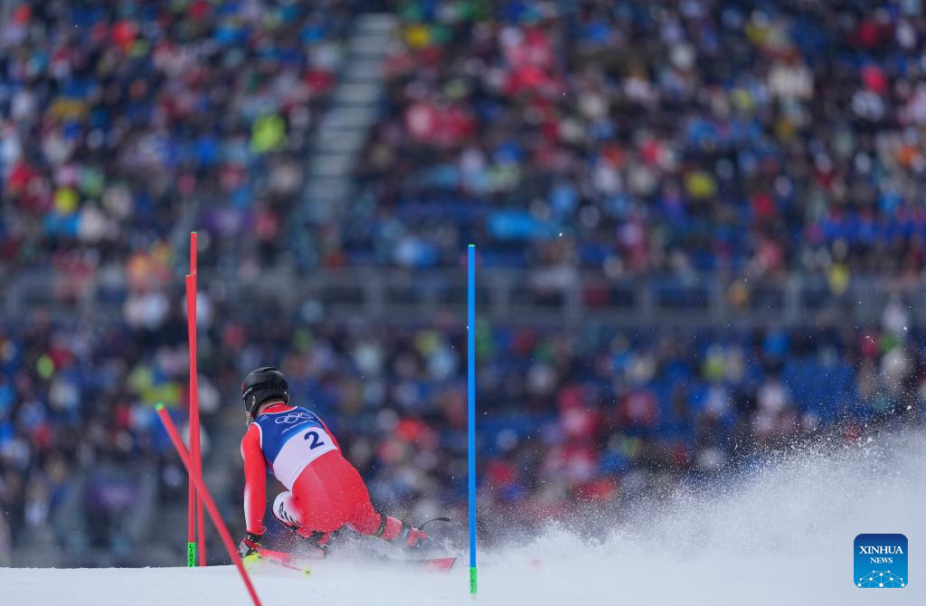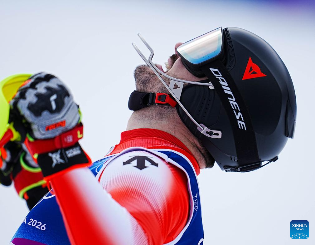 BORMIO, Italy, Feb. 16 (Xinhua) -- Switzerland's Loic Meillard overcame treacherous conditions to capture gold in the men's slalom at the Milan-Cortina 2026 Olympic Winter Games on Monday, as Norway's Atle Lie McGrath failed to finish after leading the first run.