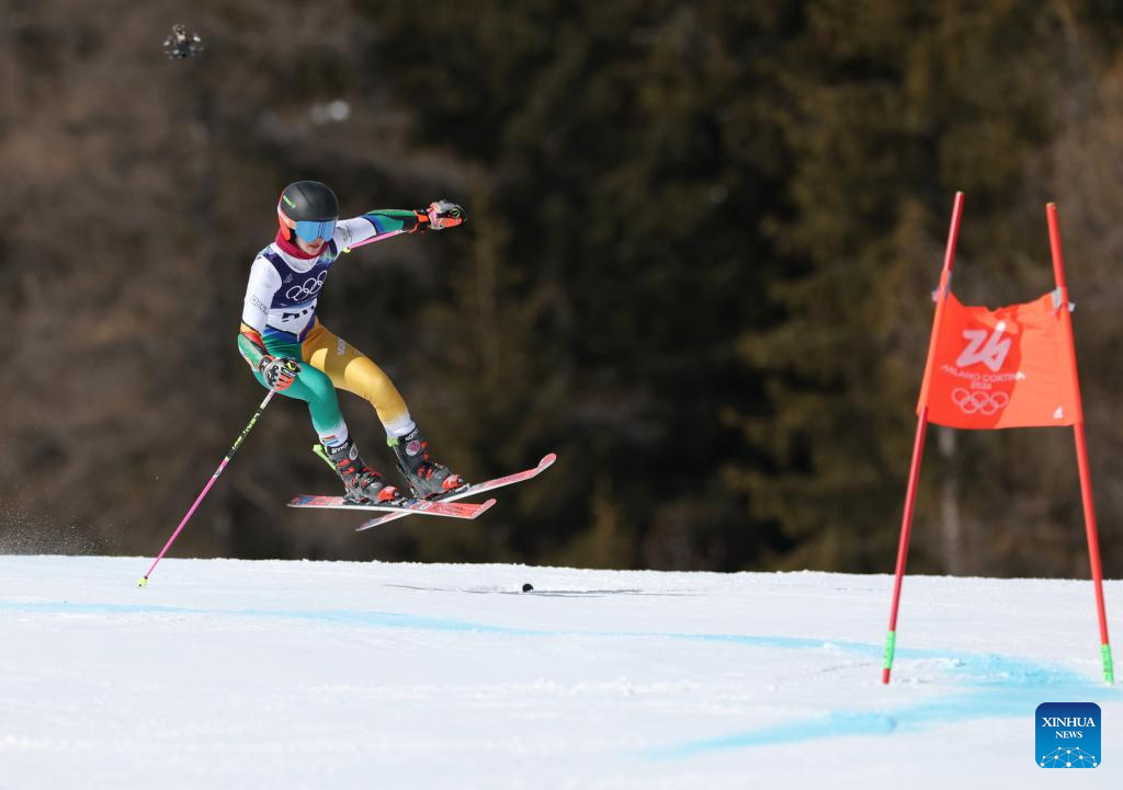 (260215) -- CORTINA D'AMPEZZO, Feb. 15, 2026 (Xinhua) -- Lara Markthaler of South Africa competes during the alpine skiing women's giant slalom run 1 at the Milan-Cortina 2026 Olympic Winter Games in Cortina, Italy, Feb. 15, 2026. (Xinhua/Zhang Chenlin)
