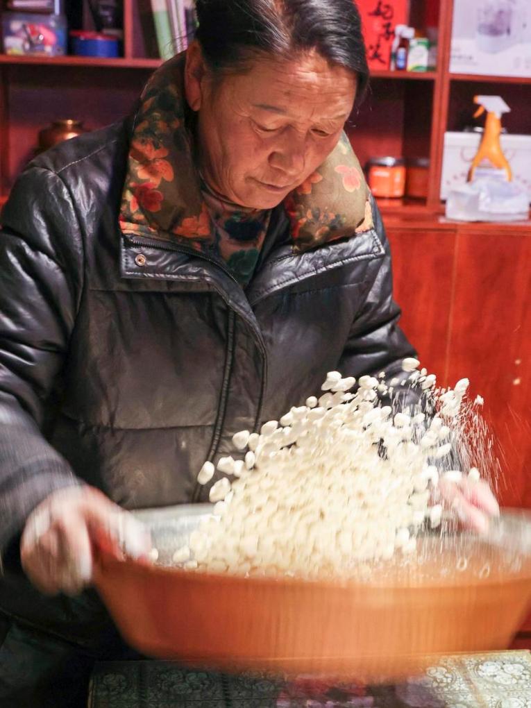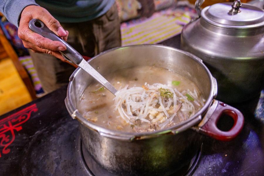 Chocho's wife Tasang prepares ingredients of "gutu" at home in Lhasa, southwest China's Xizang Autonomous Region, Feb. 16, 2026. (Xinhua/Zhang Licong)Chocho stirs "gutu" at his home in Lhasa, southwest China's Xizang Autonomous Region, Feb. 16, 2026. (Xinhua/Tenzin Nyida)