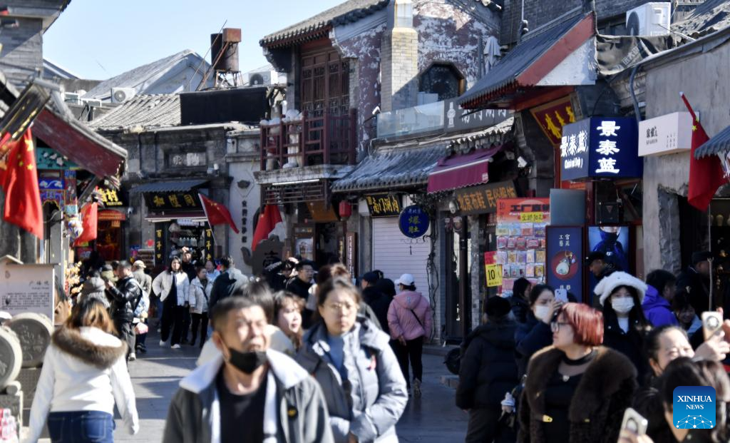 People visit the Yandaixiejie street in Beijing, capital of China, Feb. 18, 2026. People visit cultural scenic areas in Beijing to feel the festive atmosphere of the Spring Festival. (Xinhua/Li Xin)