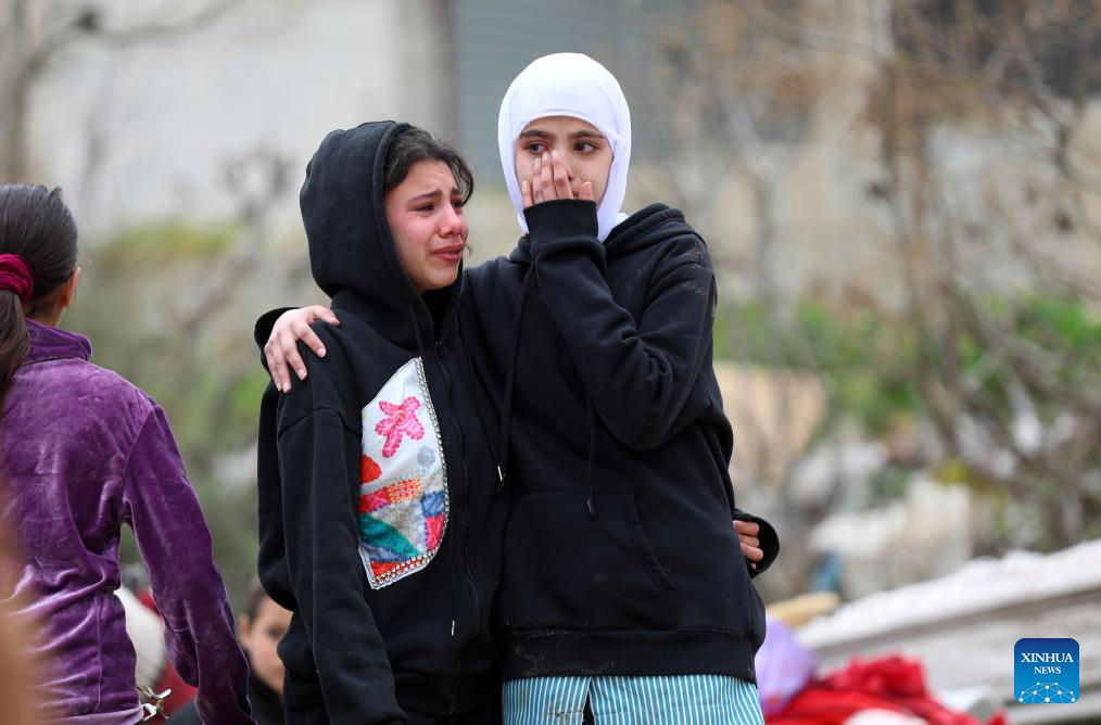 Palestinians react after Israeli excavators demolished a building in the town of al-Khader, south of Bethlehem in the West Bank, Feb. 17, 2026. (Photo by Mamoun Wazwaz/Xinhua)