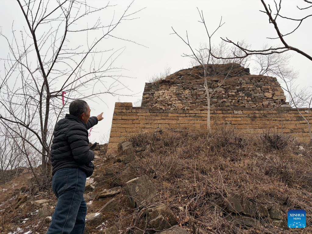 TIANJIN, Feb. 18 (Xinhua) -- In early spring, winter still lingers in the mountains of northern Tianjin. Wind moves steadily along the ridgelines of the city's Jizhou District, where the Great Wall runs in a long, weathered line across the peaks.