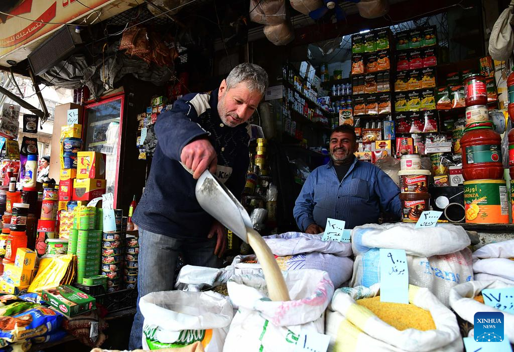 Vendors wait for customers ahead of Ramadan at a marketplace in Damascus, Syria, on Feb. 17, 2026. (Photo by Ammar Safarjalani/Xinhua)