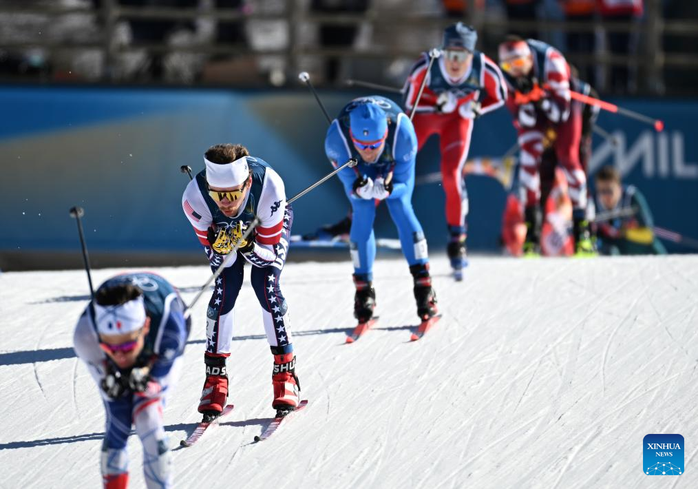 Athletes compete during the cross-country skiing men's team sprint free final at the Milan-Cortina 2026 Olympic Winter Games in Tesero, Italy, Feb. 18, 2026. (Xinhua/Peng Ziyang)