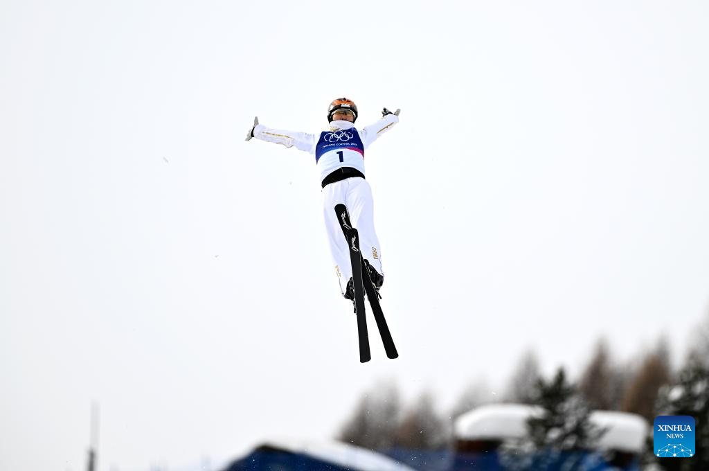 Xu Mengtao of China competes during the freestyle skiing women's aerials final 1 at the Milan-Cortina 2026 Olympic Winter Games in Livigno, Italy, Feb. 18, 2026. (Xinhua/Zhang Hongxiang)
