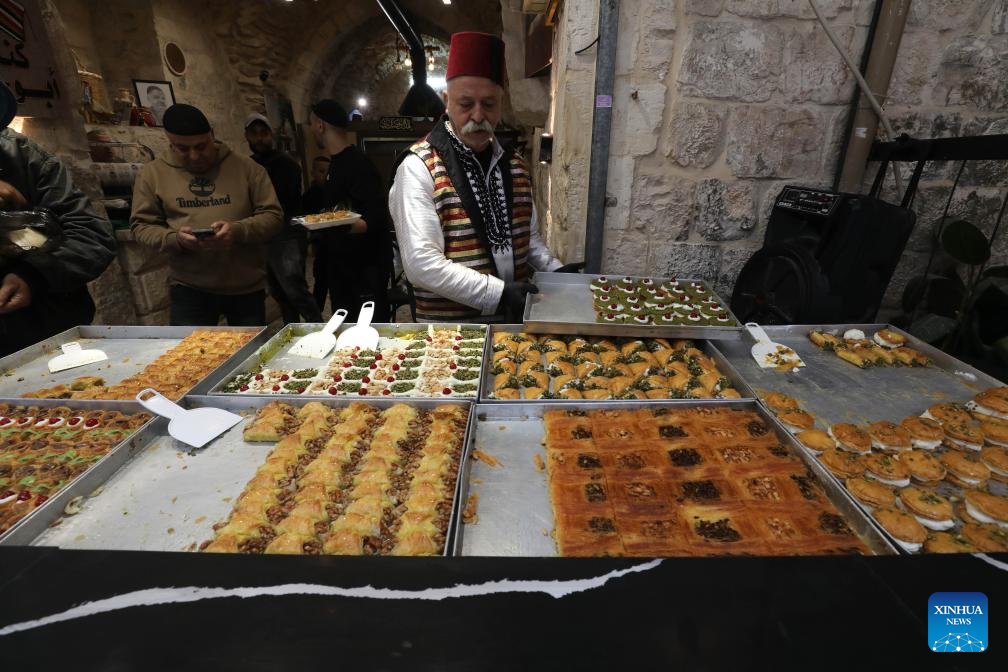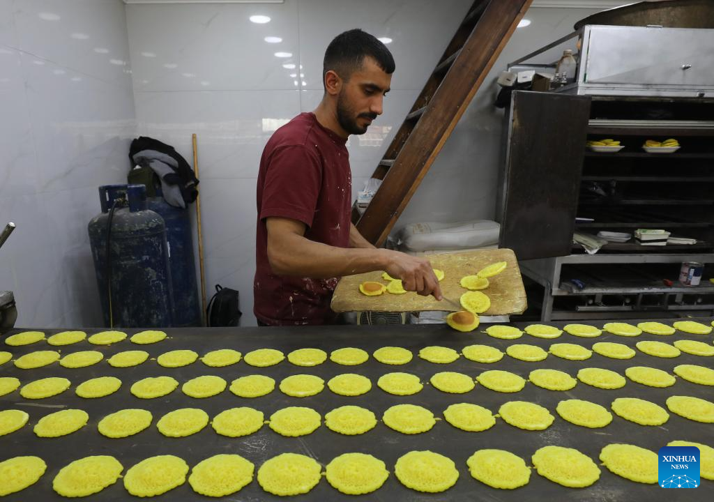 Palestinians prepare traditional sweets to sell on the first day of Ramadan in the city of Nablus in the northern West Bank, on Feb. 18, 2026. (Photo by Nidal Eshtayeh/Xinhua)