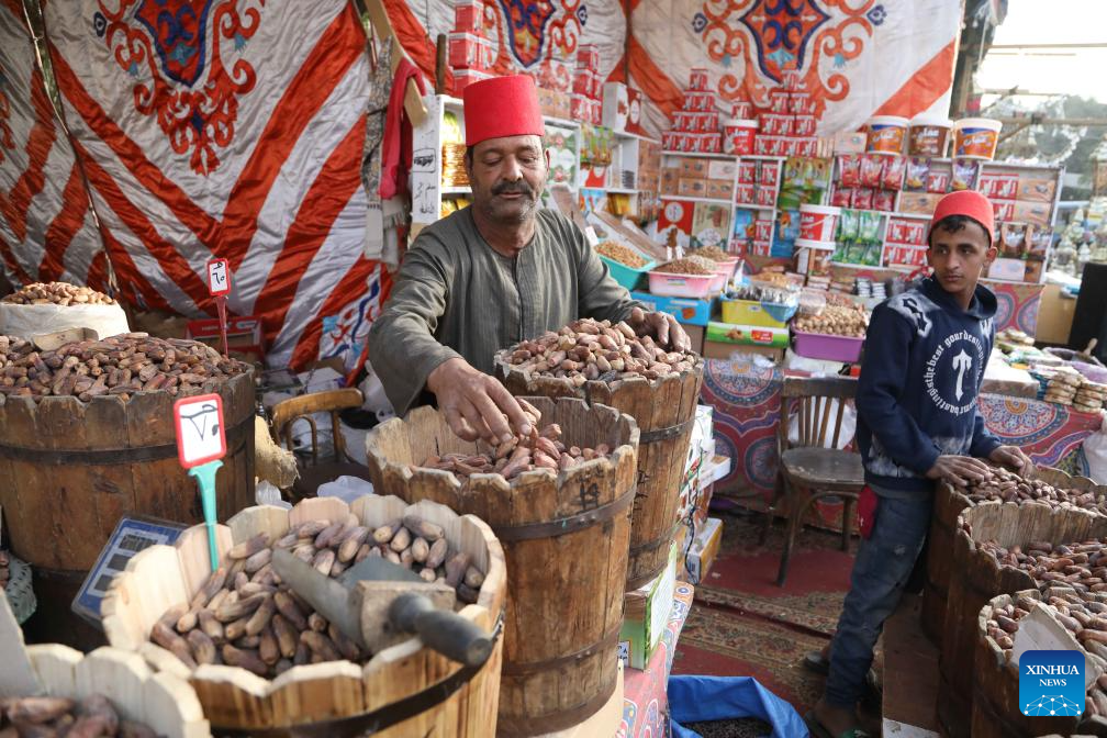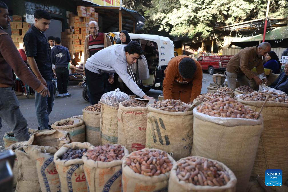 People buy dates on the first day of Ramadan at a market in Cairo, Egypt, on Feb. 19, 2026. (Xinhua/Ahmed Gomaa)